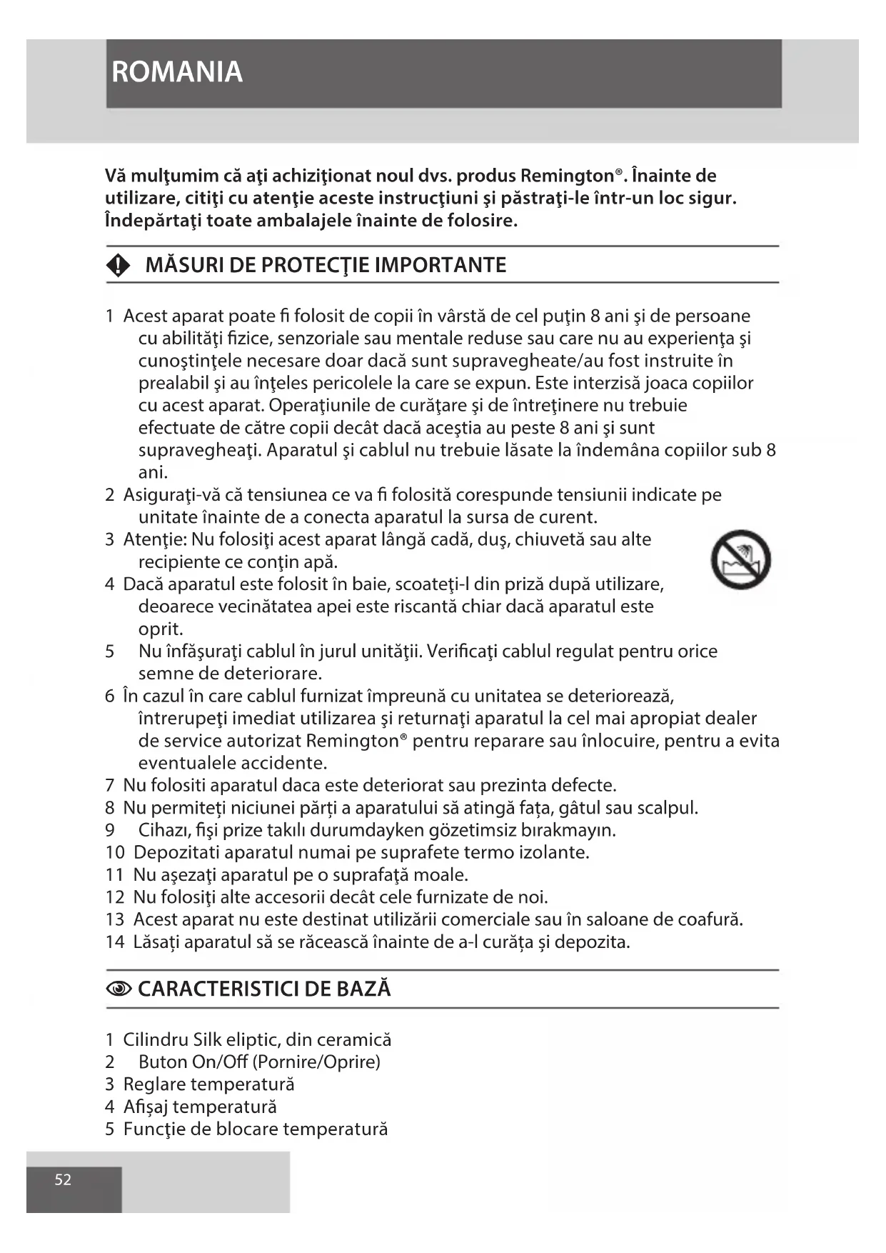Vă mulţumim că aţi achiziţionat noul dvs. produs Remington®. Înainte de