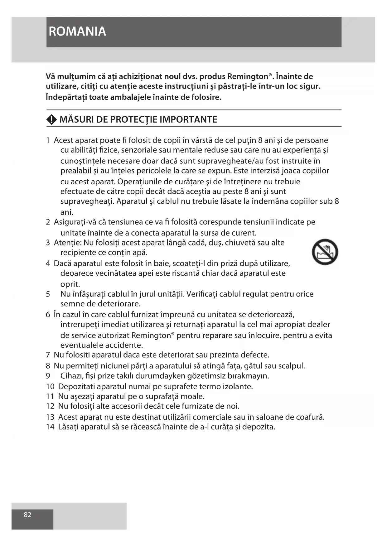 Vă mulţumim că aţi achiziţionat noul dvs. produs Remington®. Înainte de