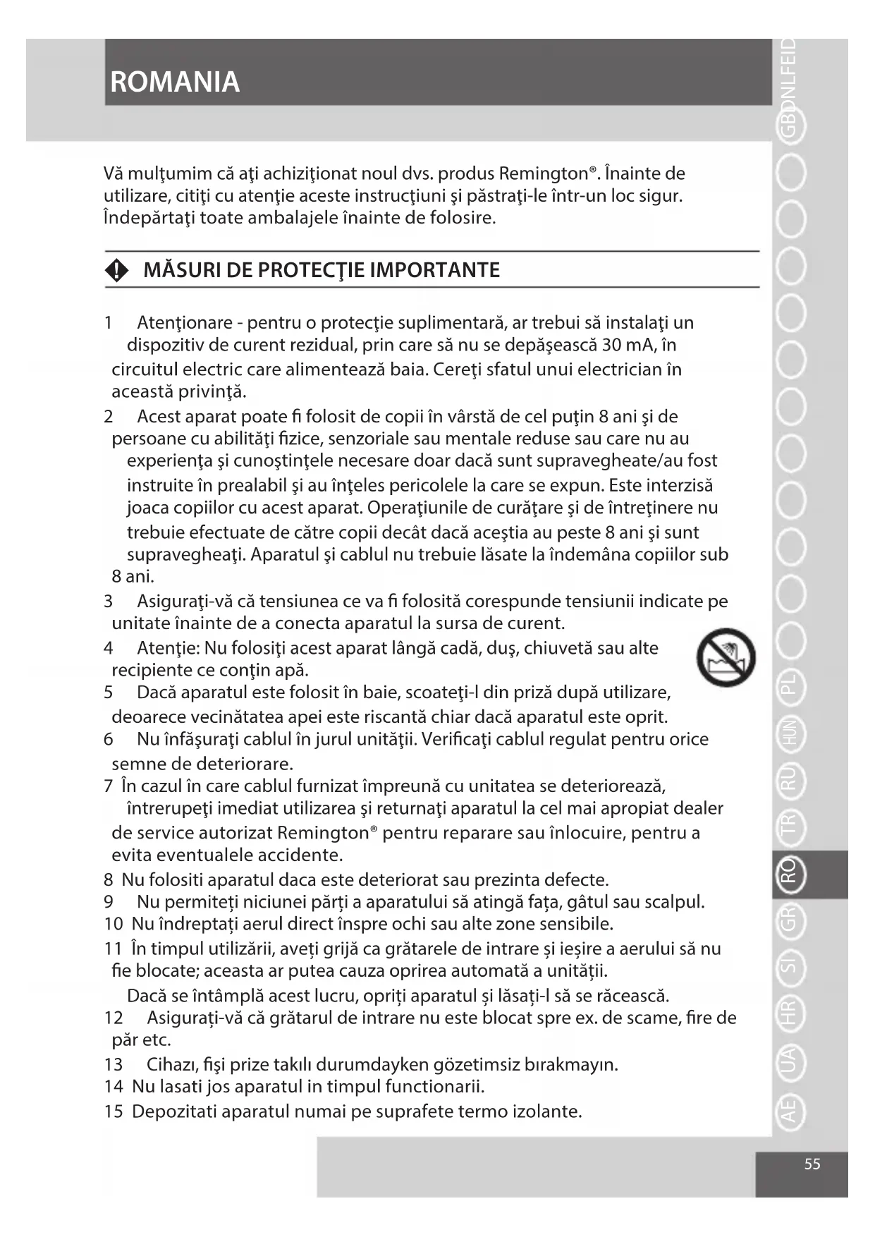 Vă mulţumim că aţi achiziţionat noul dvs. produs Remington®. Înainte de