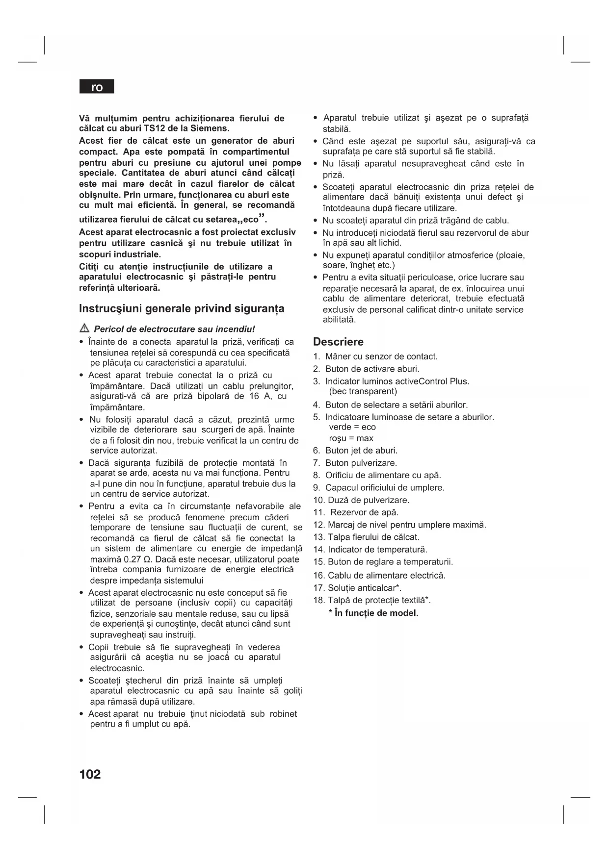 TS12150 - Fier de călcat SIEMENS - Notice d'utilisation et mode d'emploi gratuit