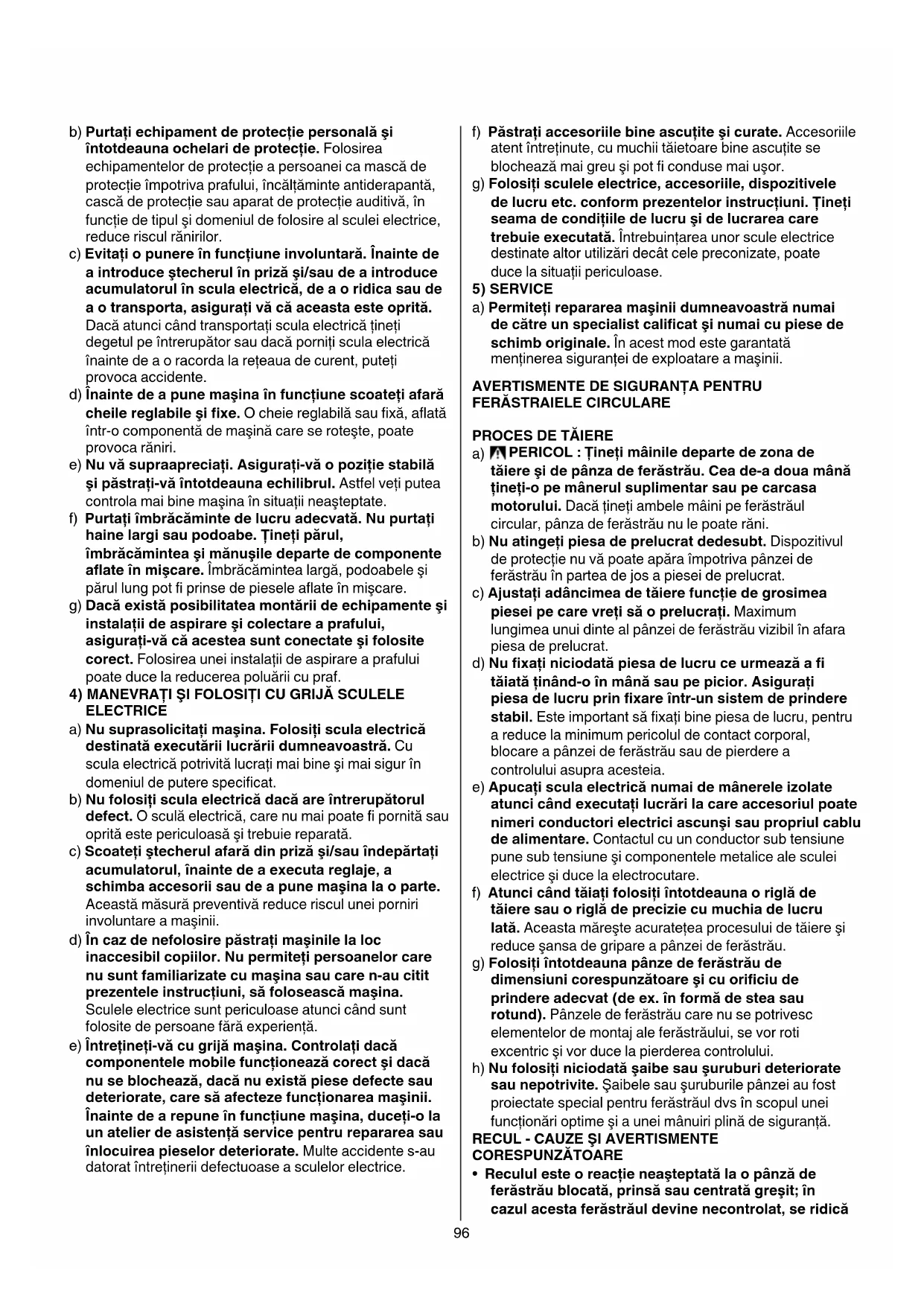 răniri grave. Păstraţi toate indicaţiile de avertizare şi