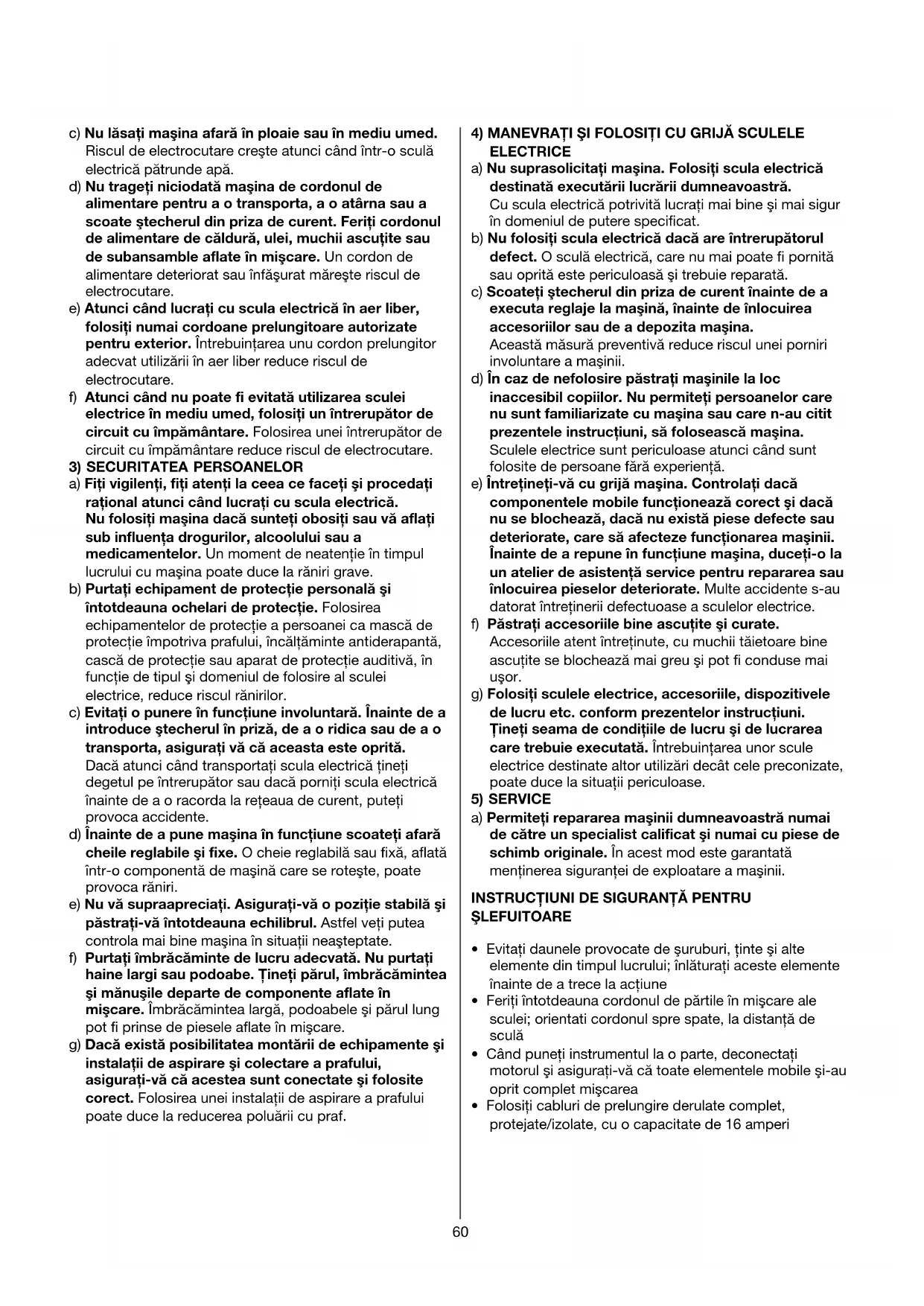 4) MANEVRAŢI ŞI FOLOSIŢI CU GRIJĂ SCULELE ELECTRICE