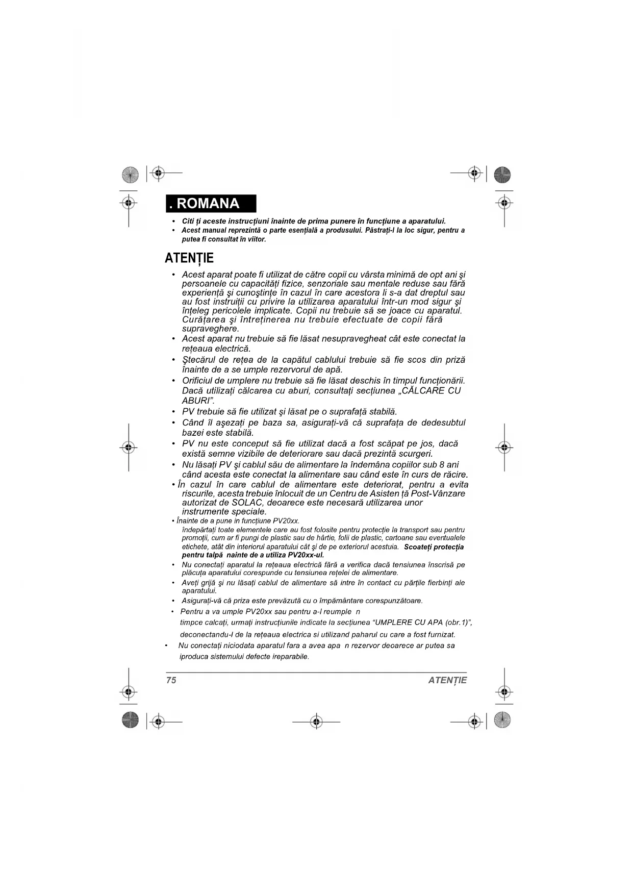 PV2005 - Fier de călcat SOLAC - Manual de utilizare gratuit