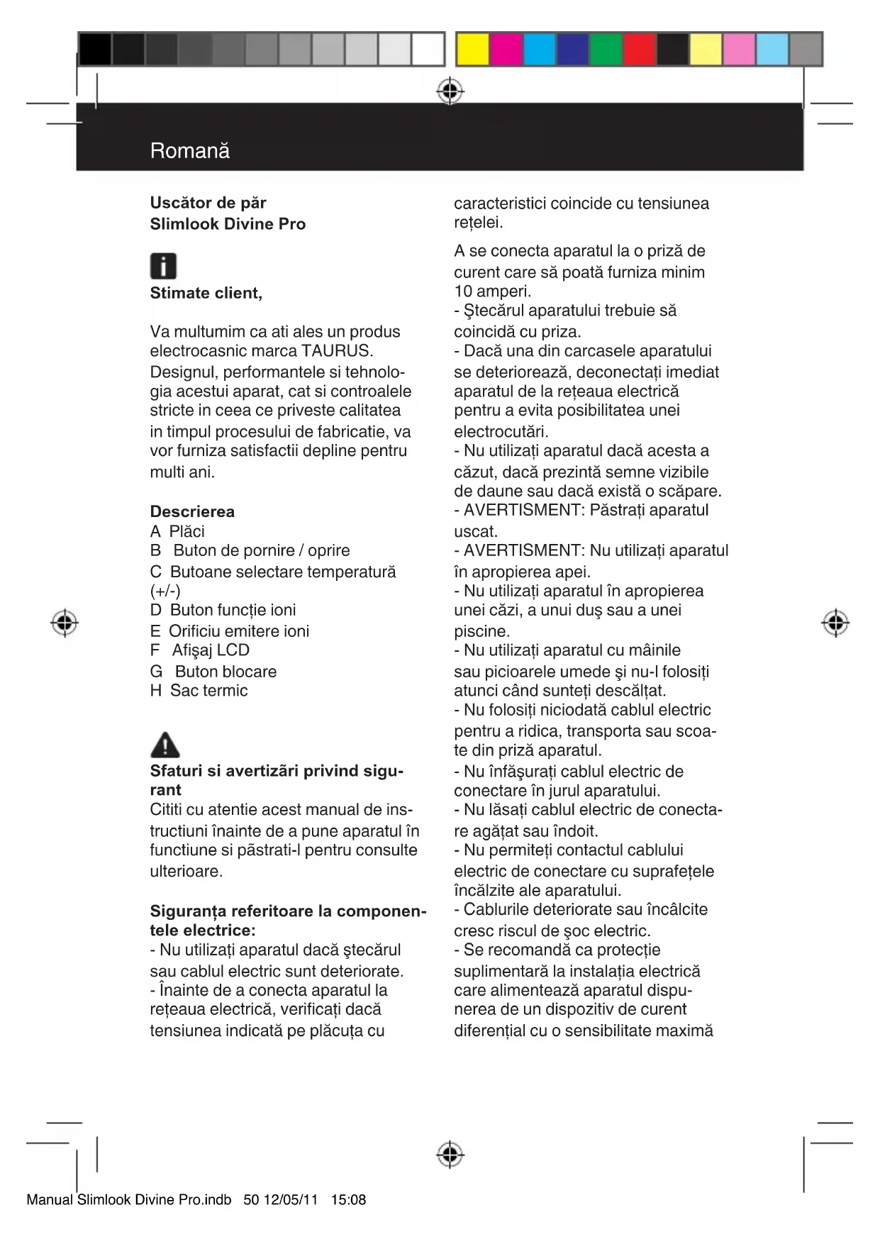 MANUAL DE UTILIZARE Slimlook Divine Pro TAURUS