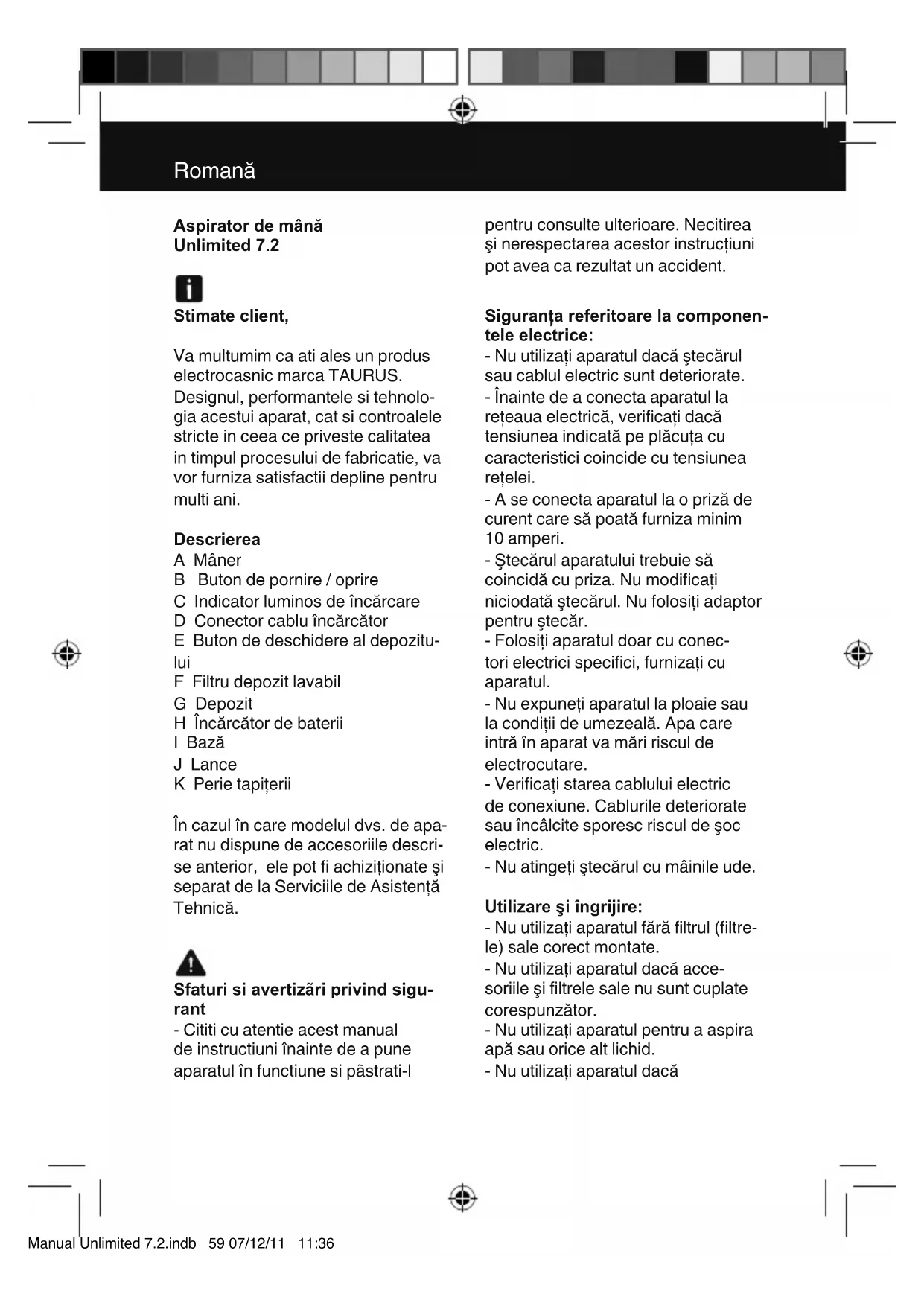 MANUAL DE UTILIZARE Unlimited 7.2 TAURUS