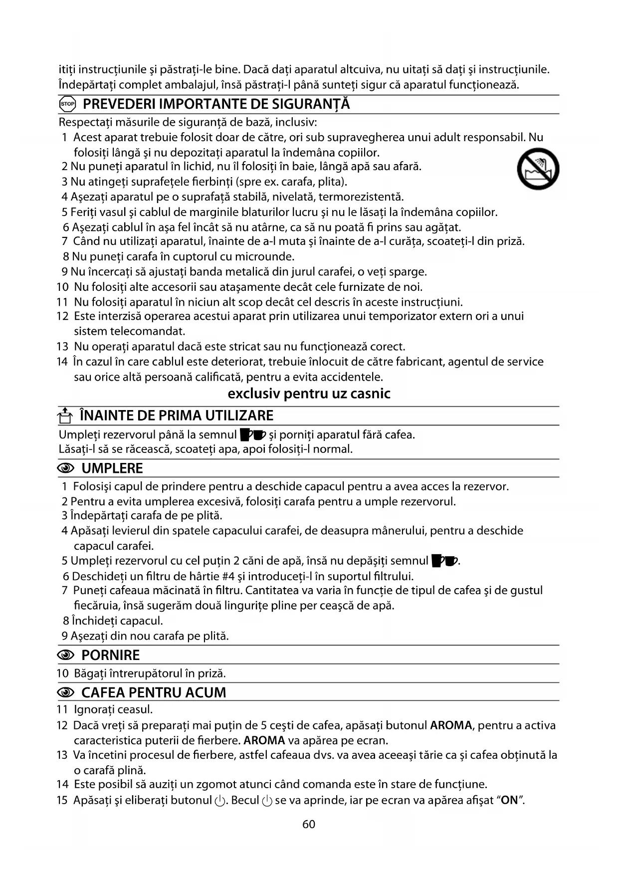 12 Dacă vreţi să preparaţi mai puţin de 5 ceşti de cafea, apăsaţi butonul AROMA, pentru a activa