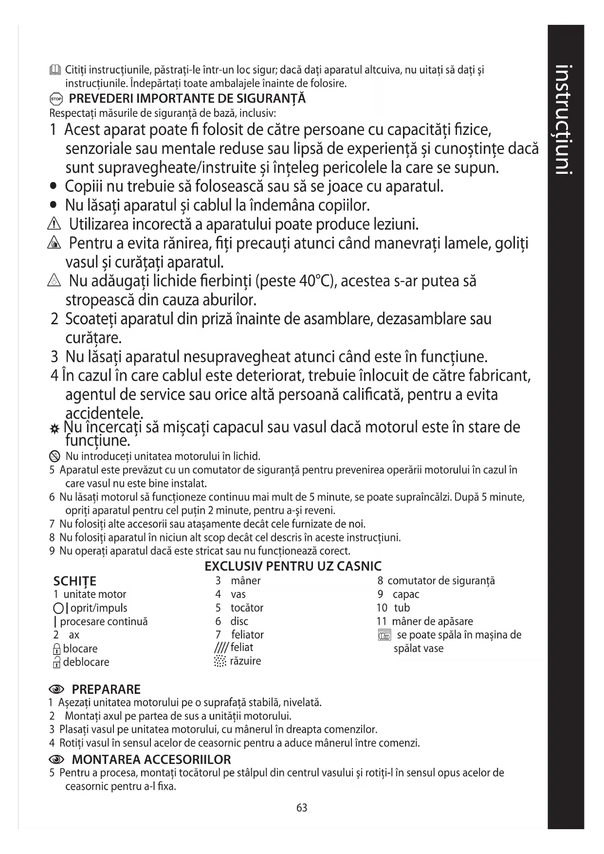 8 Nu folosiţi aparatul în niciun alt scop decât cel descris în aceste instrucţiuni.