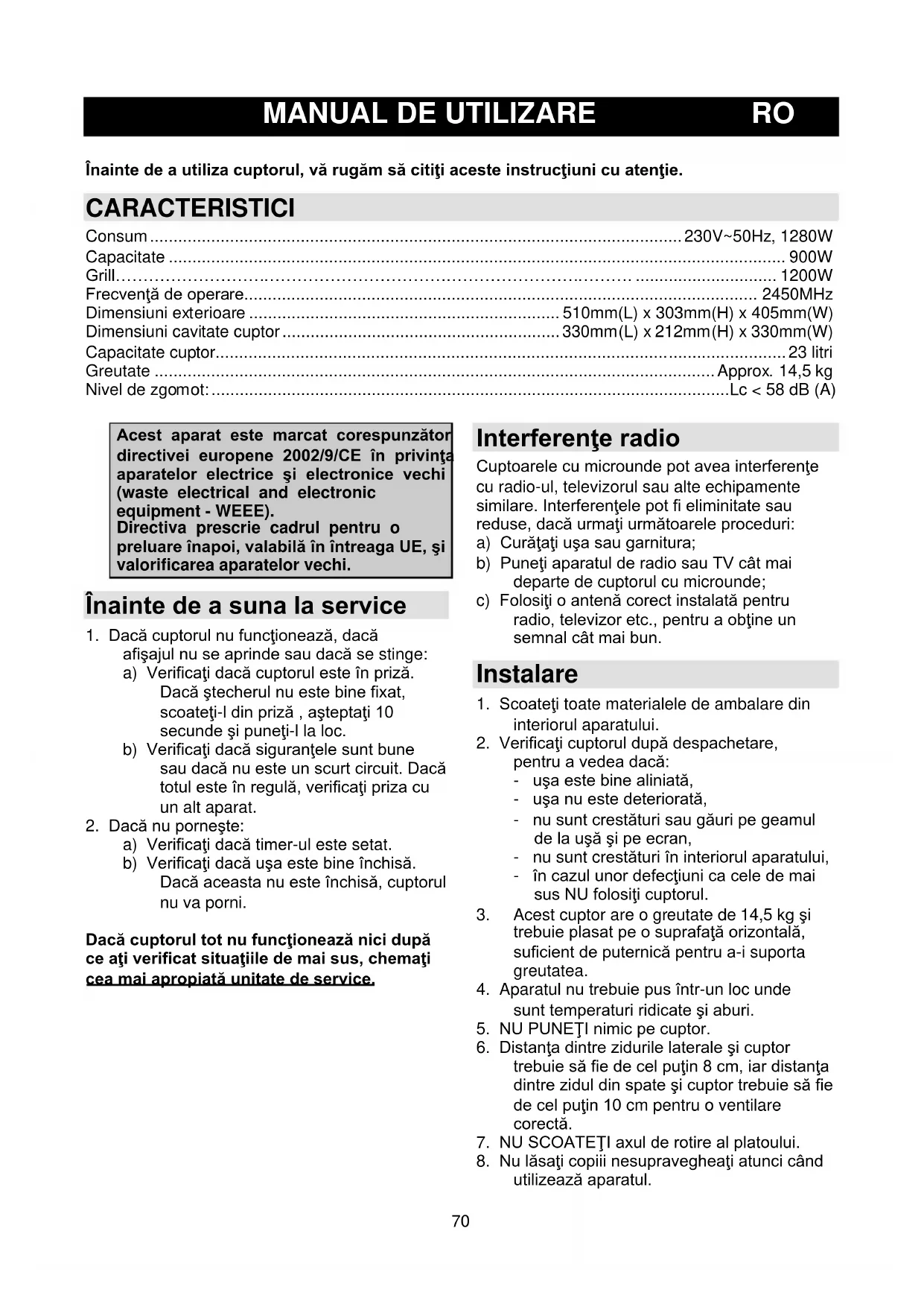Înainte de a utiliza cuptorul, vă rugăm să citiŝi aceste instrucŝiuni cu atenŝie.