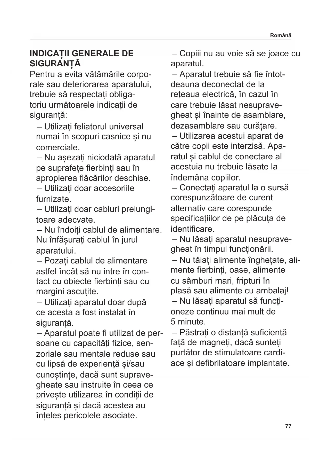 Instrucțiuni de utilizare ........................77