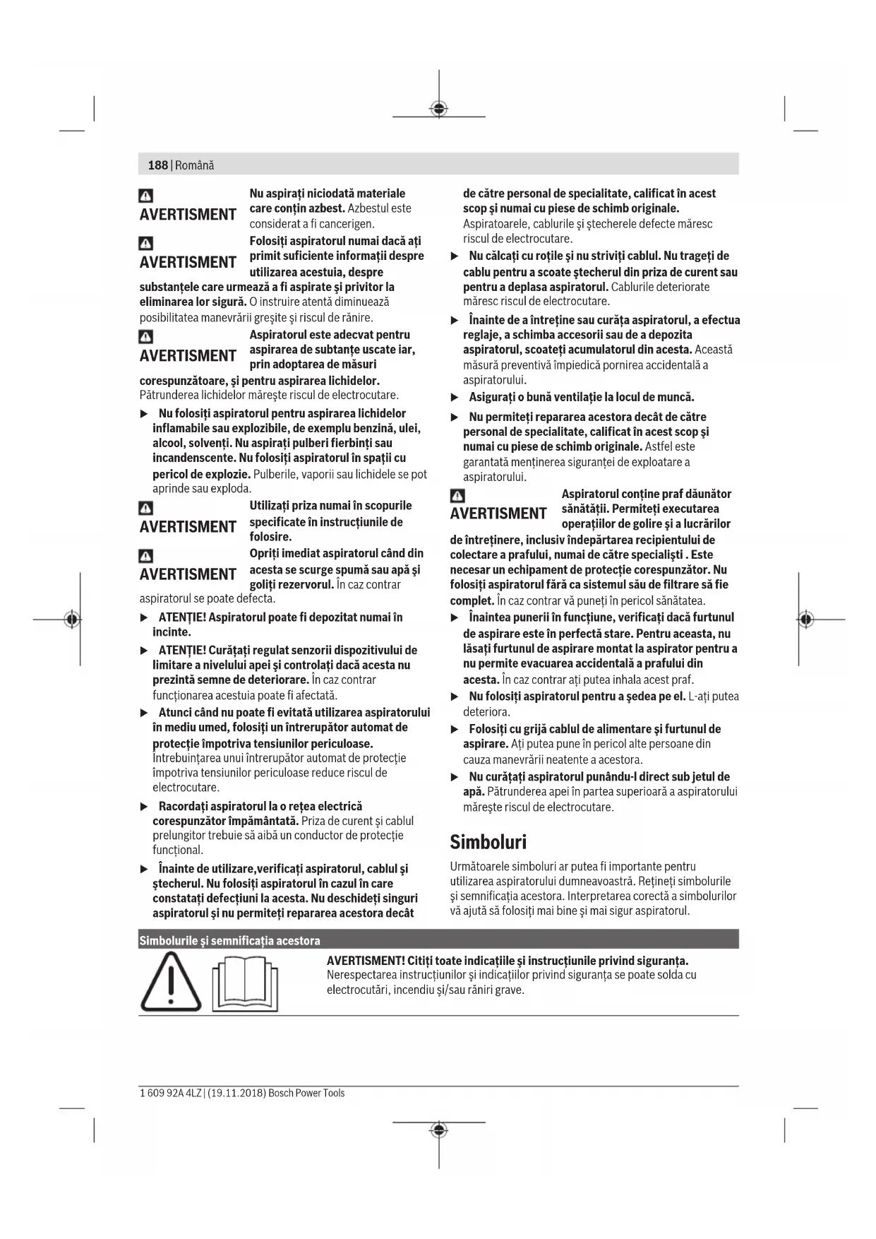 Română | 187 Bosch Power Tools 1 609 92A 4LZ | (19.11.2018)188 | Română