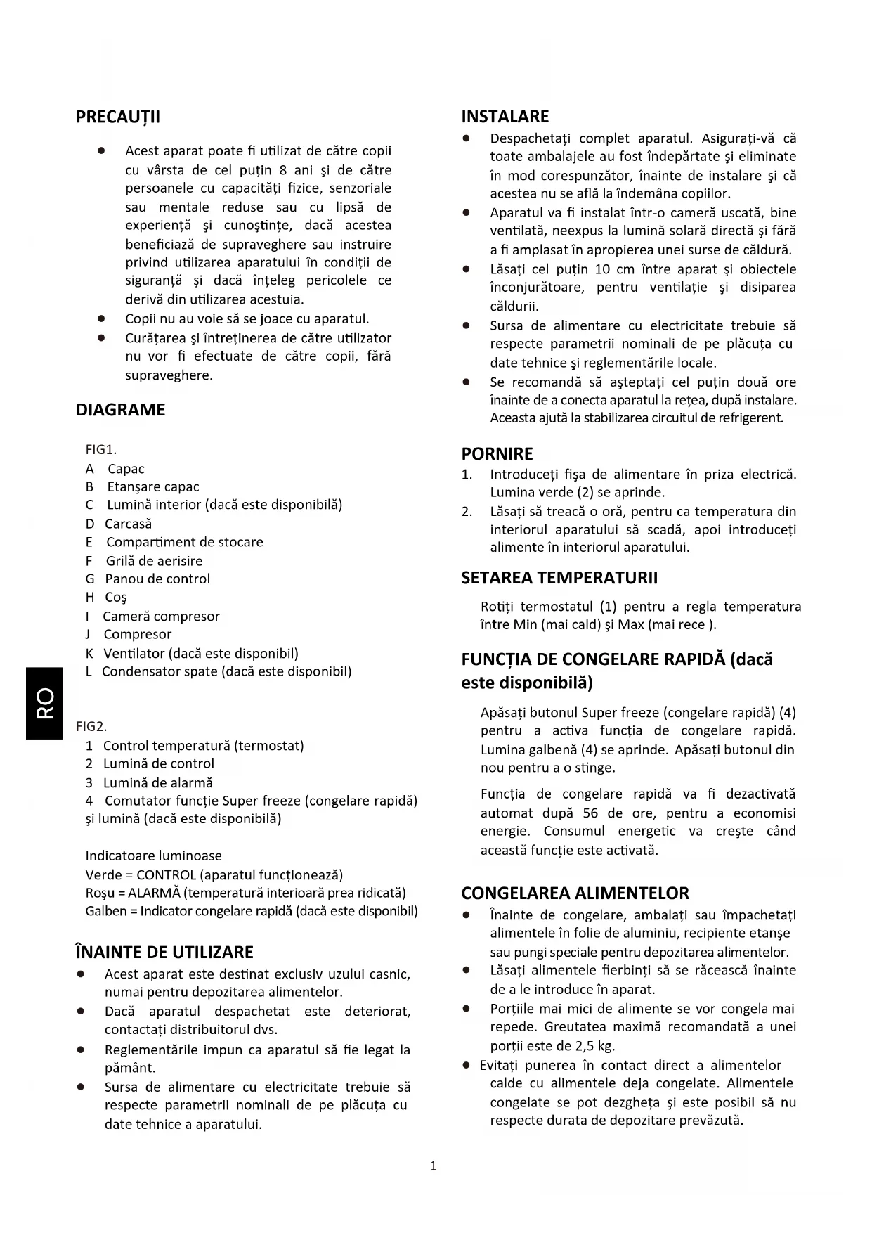 FUNCŢIA DE CONGELARE RAPIDĂ (dacă