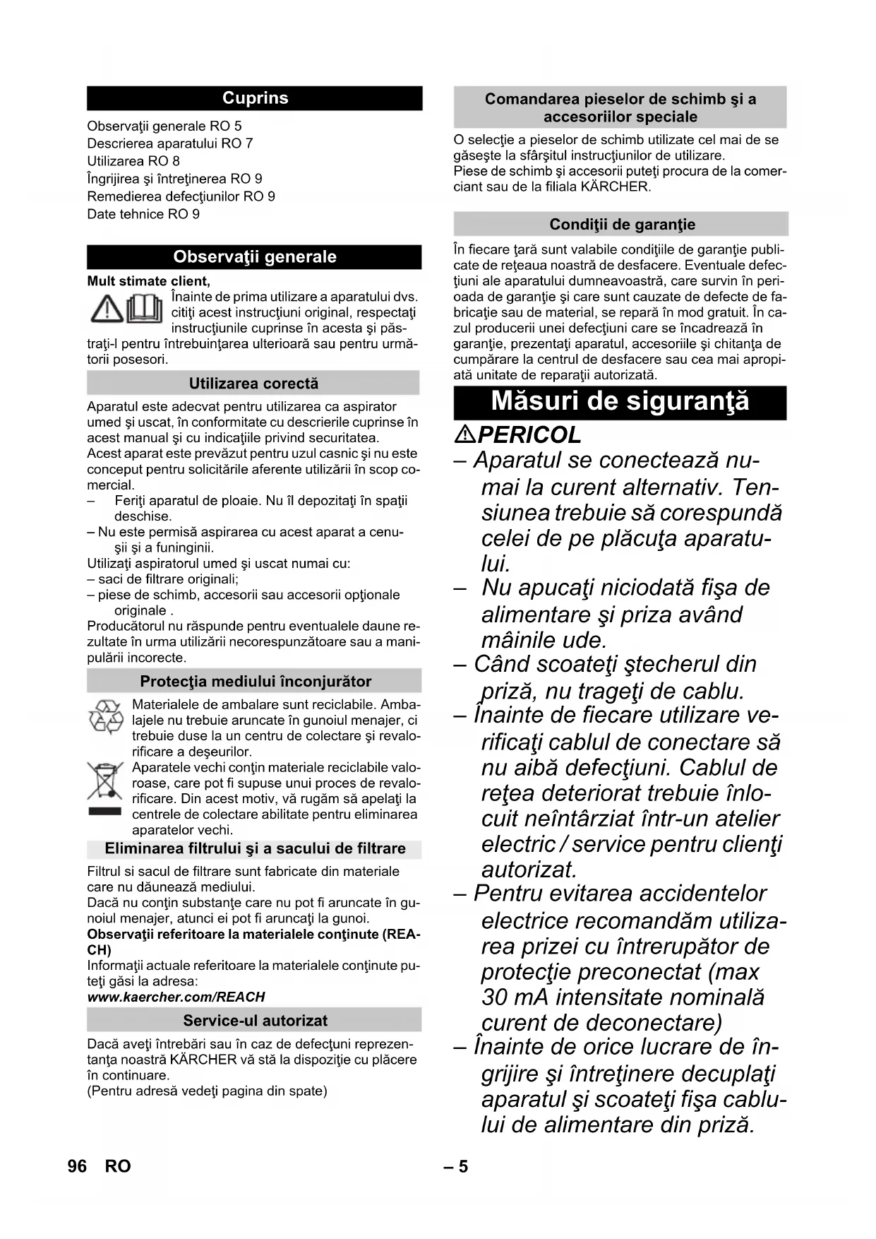 www.kaercher.com/REACH Dacă aveţi întrebări sau în caz de defecţuni reprezen-