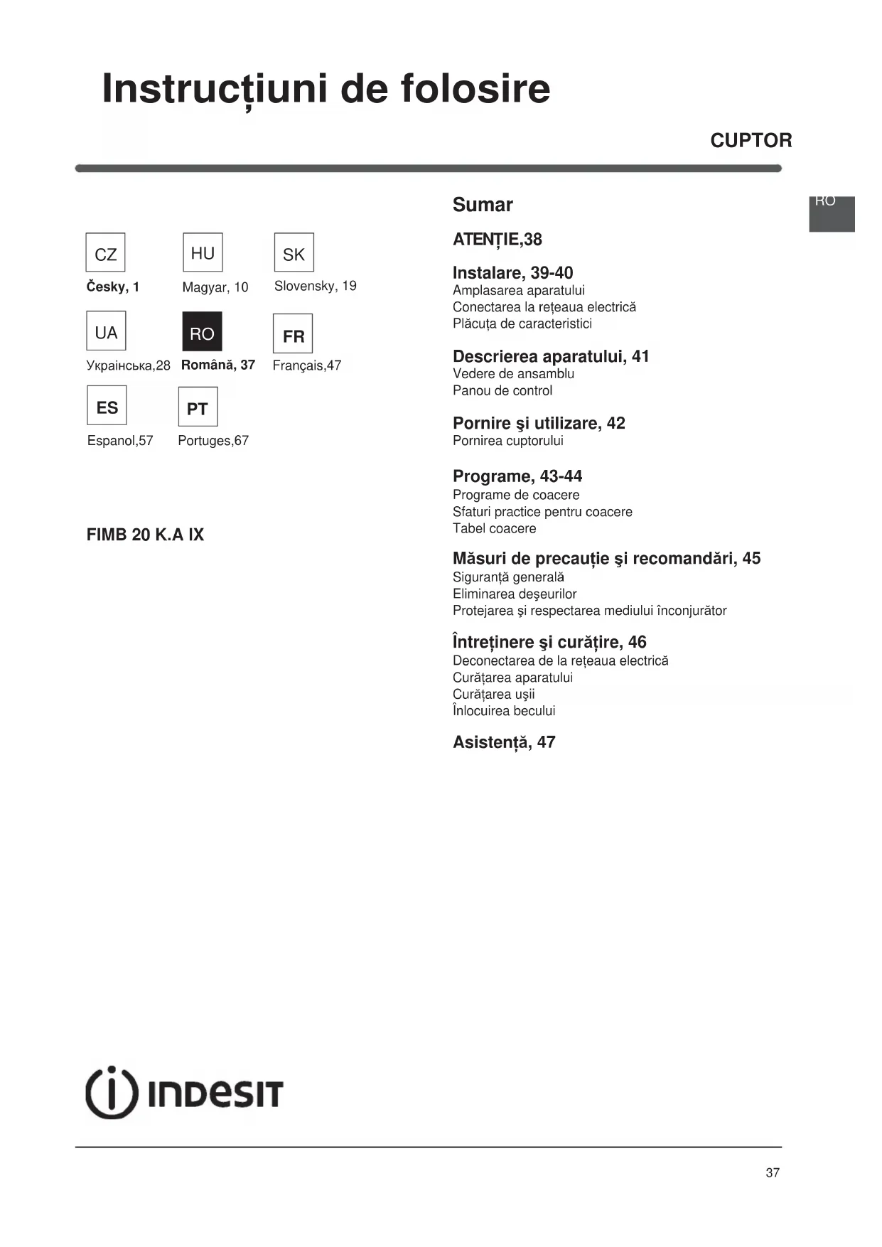 MANUAL DE UTILIZARE FIMB 20 K.A IX (EE) INDESIT