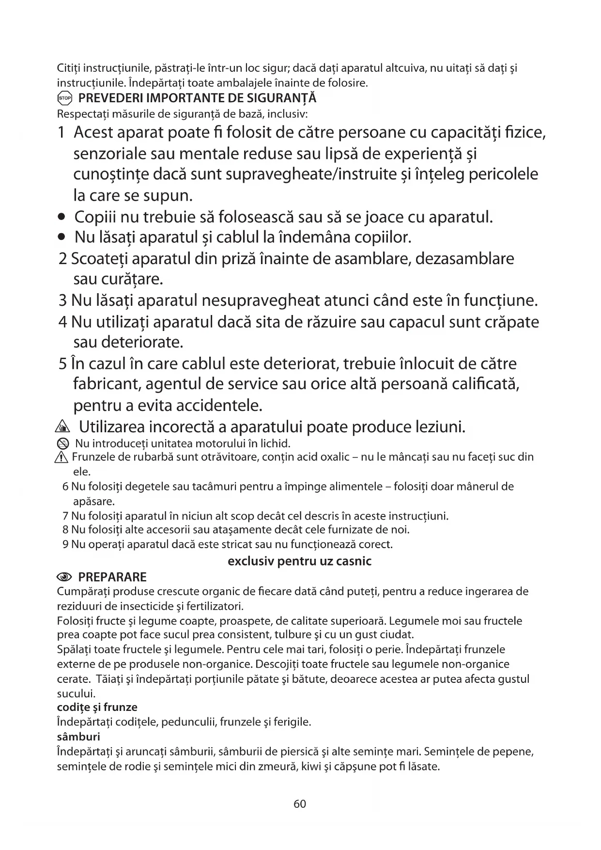 7 Nu folosiţi aparatul în niciun alt scop decât cel descris în aceste instrucţiuni.