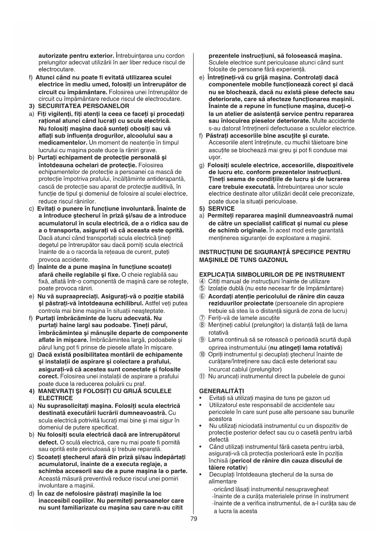 - depozitaţi maşina de tuns gazonul într-un spaţiu uscat