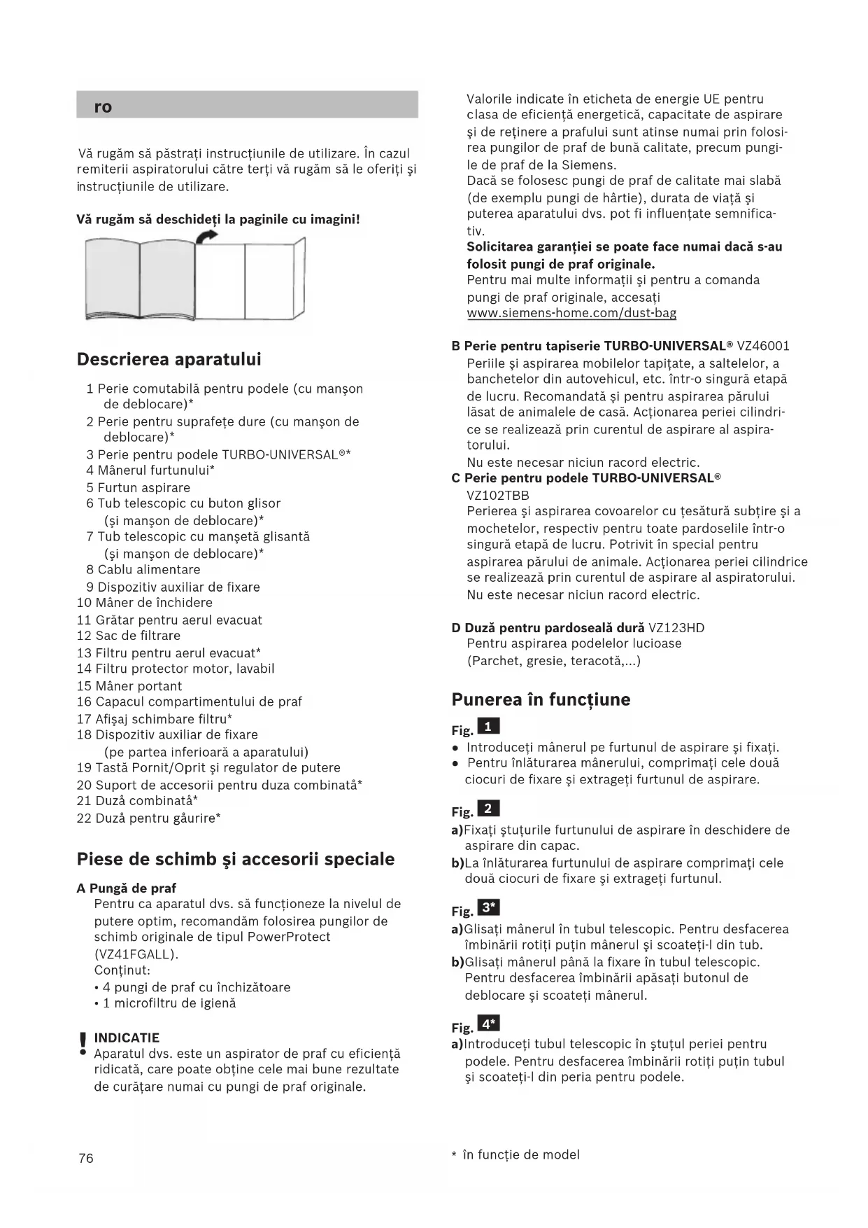şi în scopuri profesionale. Utilizaţi aspiratorul numai