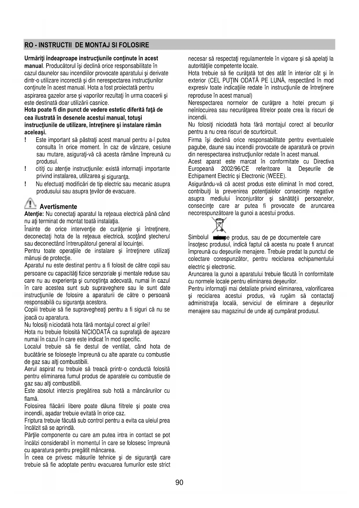 MANUAL DE UTILIZARE UP HIDDENA50 ELICA
