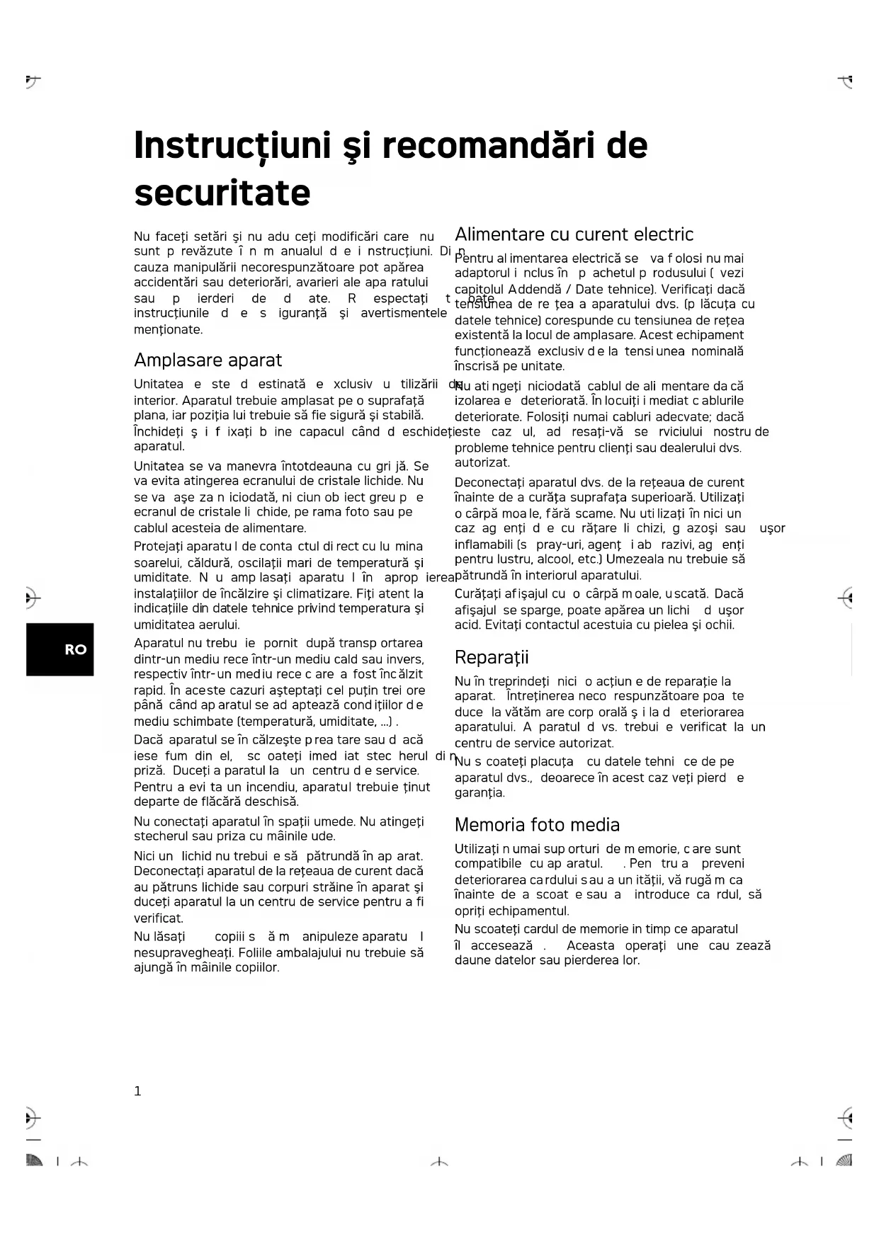 Nici un lichid nu trebui e să pătrundă în ap arat. Deconectați aparatul de la rețeaua de curent dacă au pătruns lichide sau corpuri străine în aparat și duceți aparatul la un centru de service pentru a fi verificat.