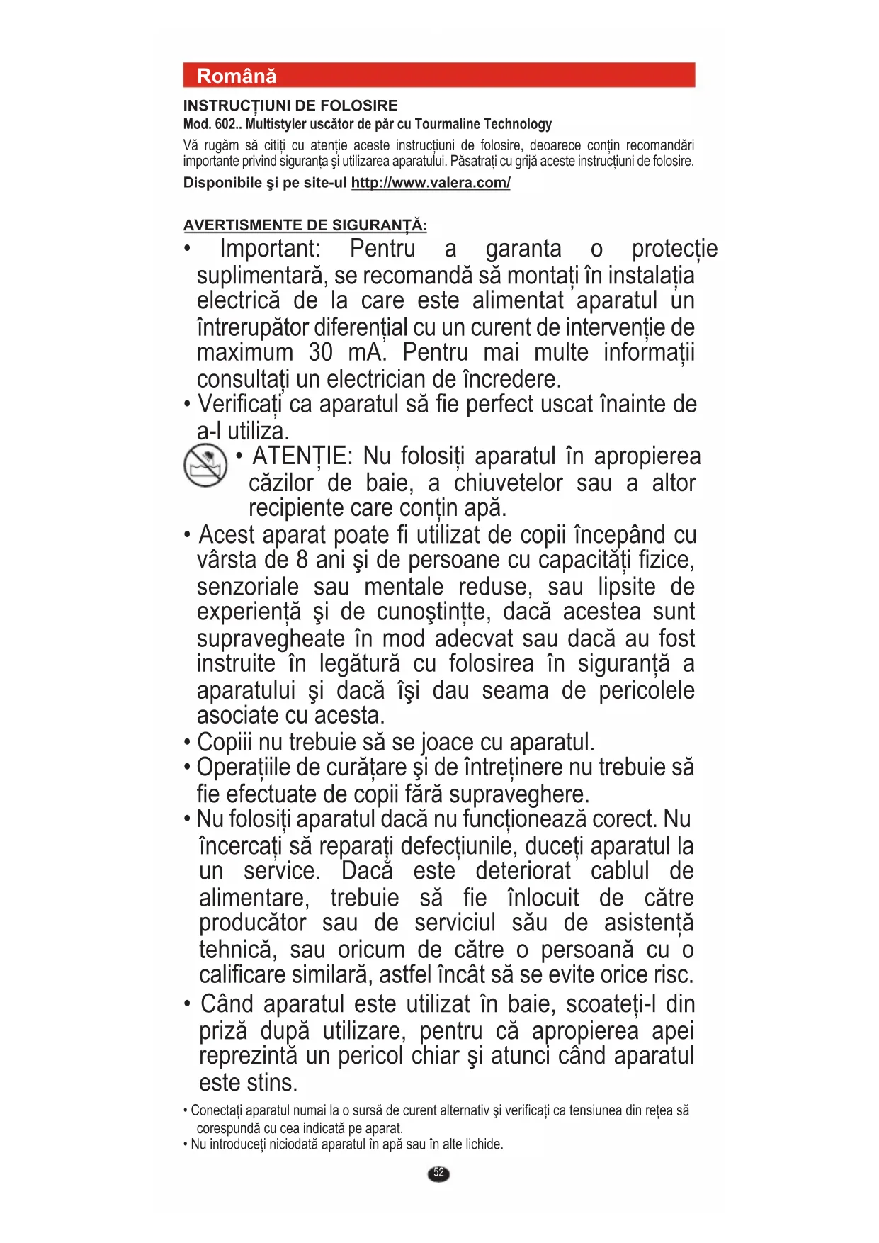 MANUAL DE UTILIZARE Pro Style 400 Tourmaline 602.01B VALERA