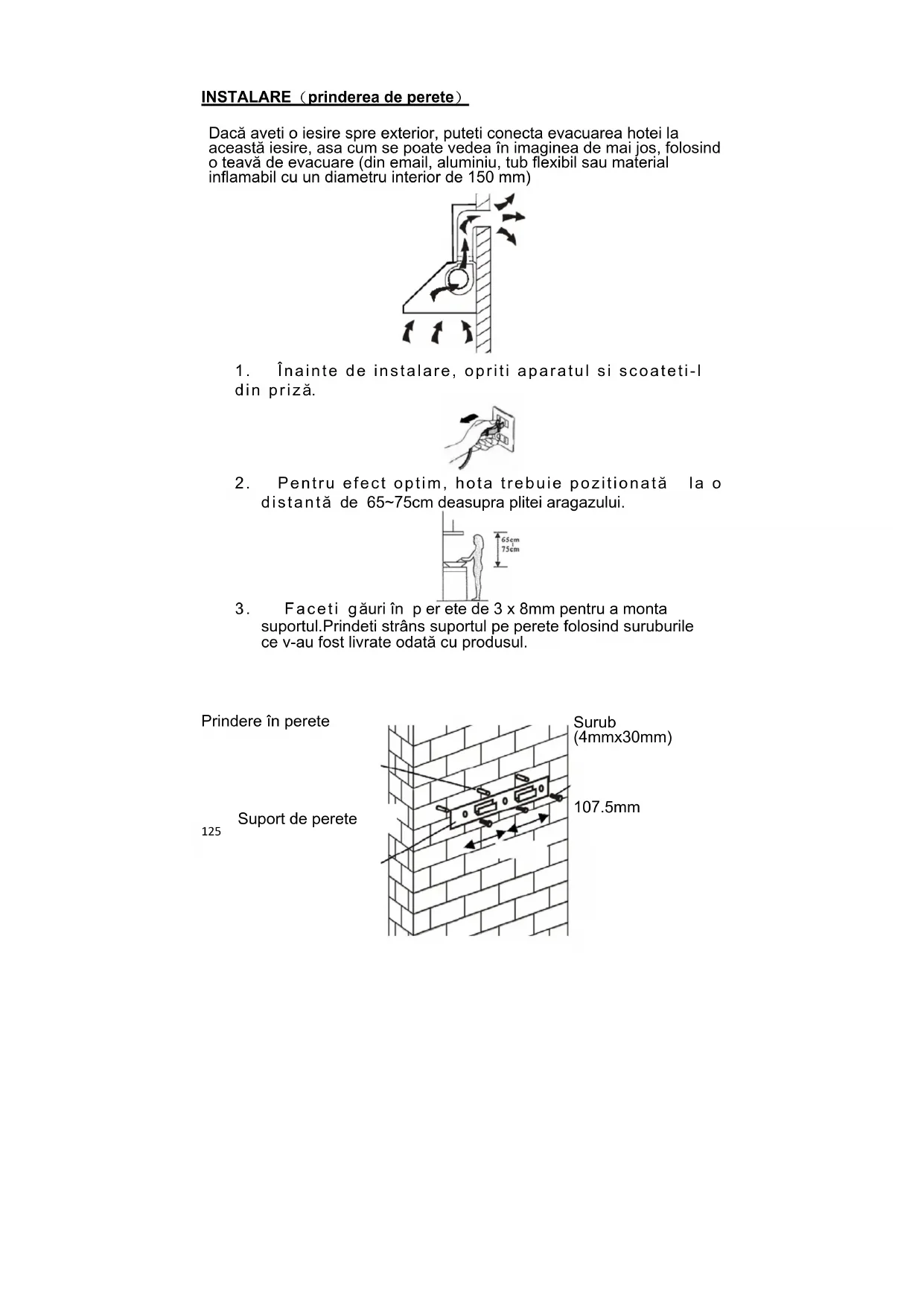 de teava de evacuare si instalarea hotei se face similar cu cea