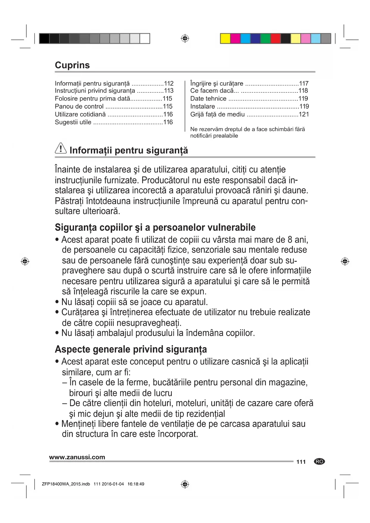Informații pentru siguranță ZFP18400WA_2015.indb 111 2016-01-04 16:18:49112