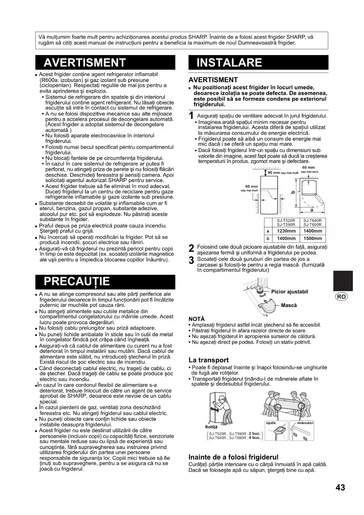 SJT640RS - Frigider SHARP - Manual de utilizare gratuit