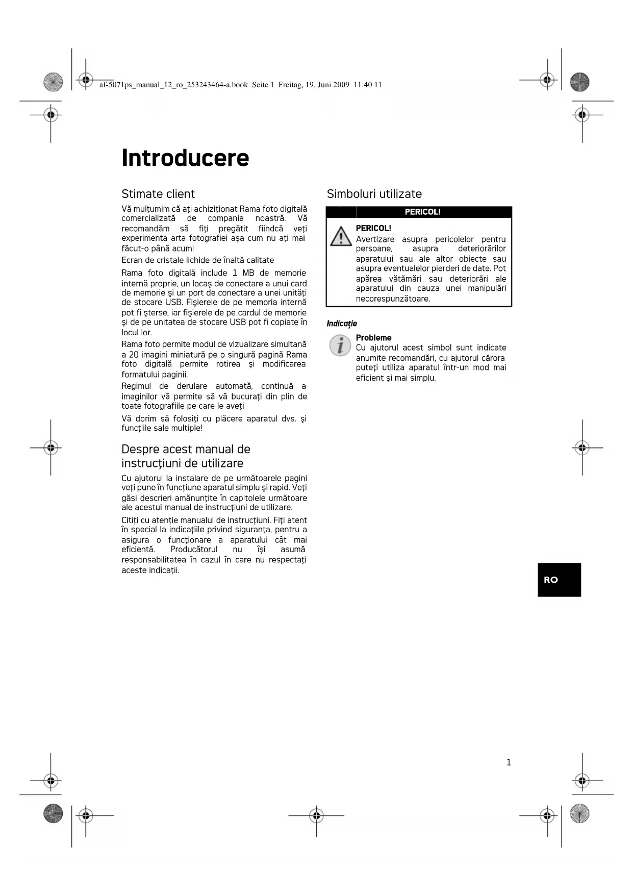 - Se verifică dacă formatul fişierului este recunoscut. af-5071ps_manual_12_ro_253243464-a.book Seite 7 Freitag, 19. Juni 2009 11:40 118