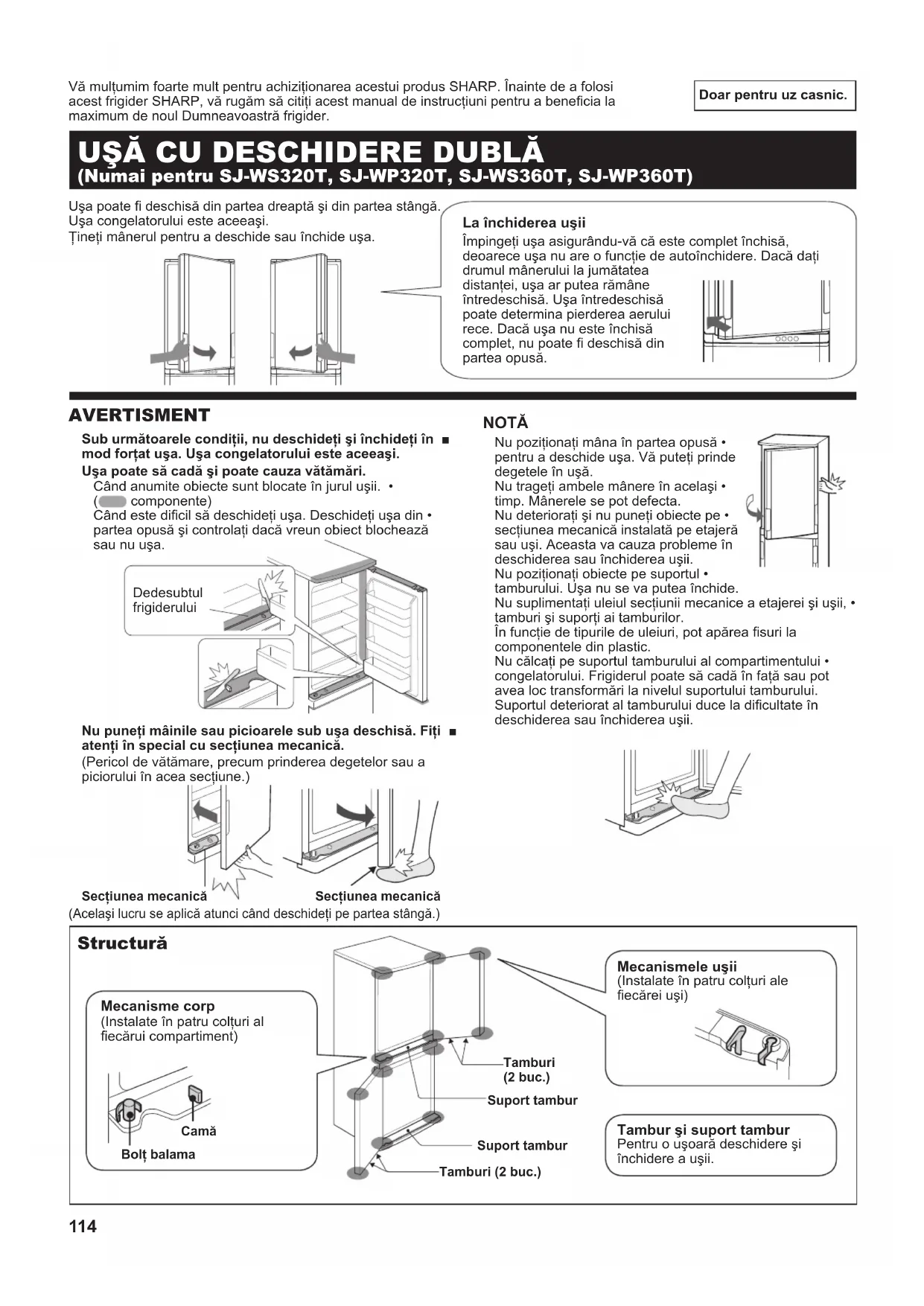 acest frigider SHARP, vă rugăm să citiţi acest manual de instrucţiuni pentru a benecia la