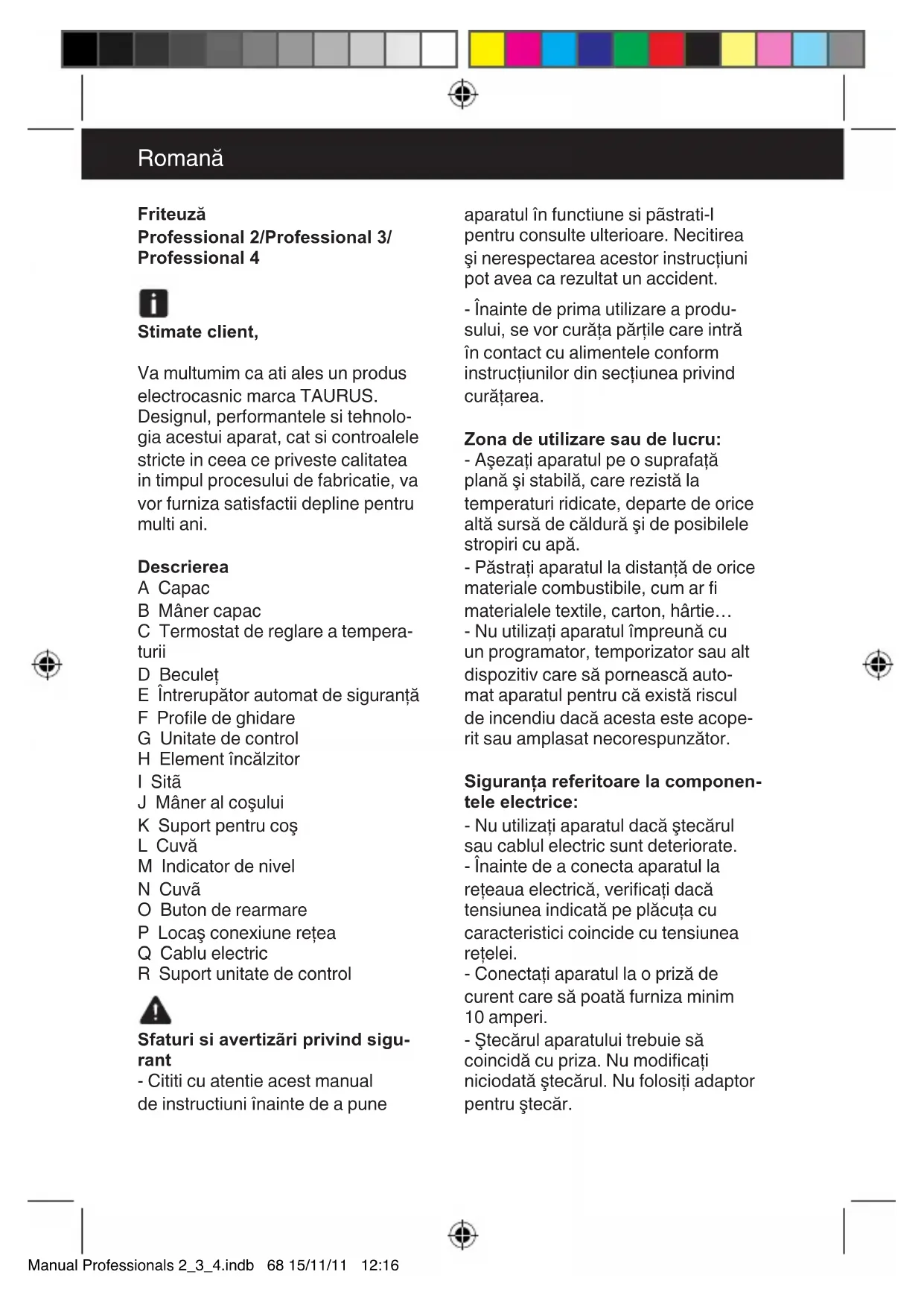 MANUAL DE UTILIZARE Professional 3L TAURUS