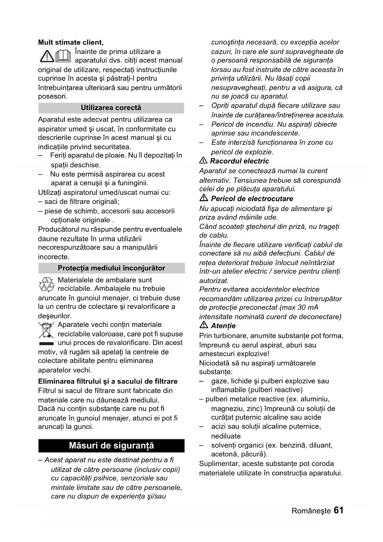 Măsuri de siguranţă62 Româneşte