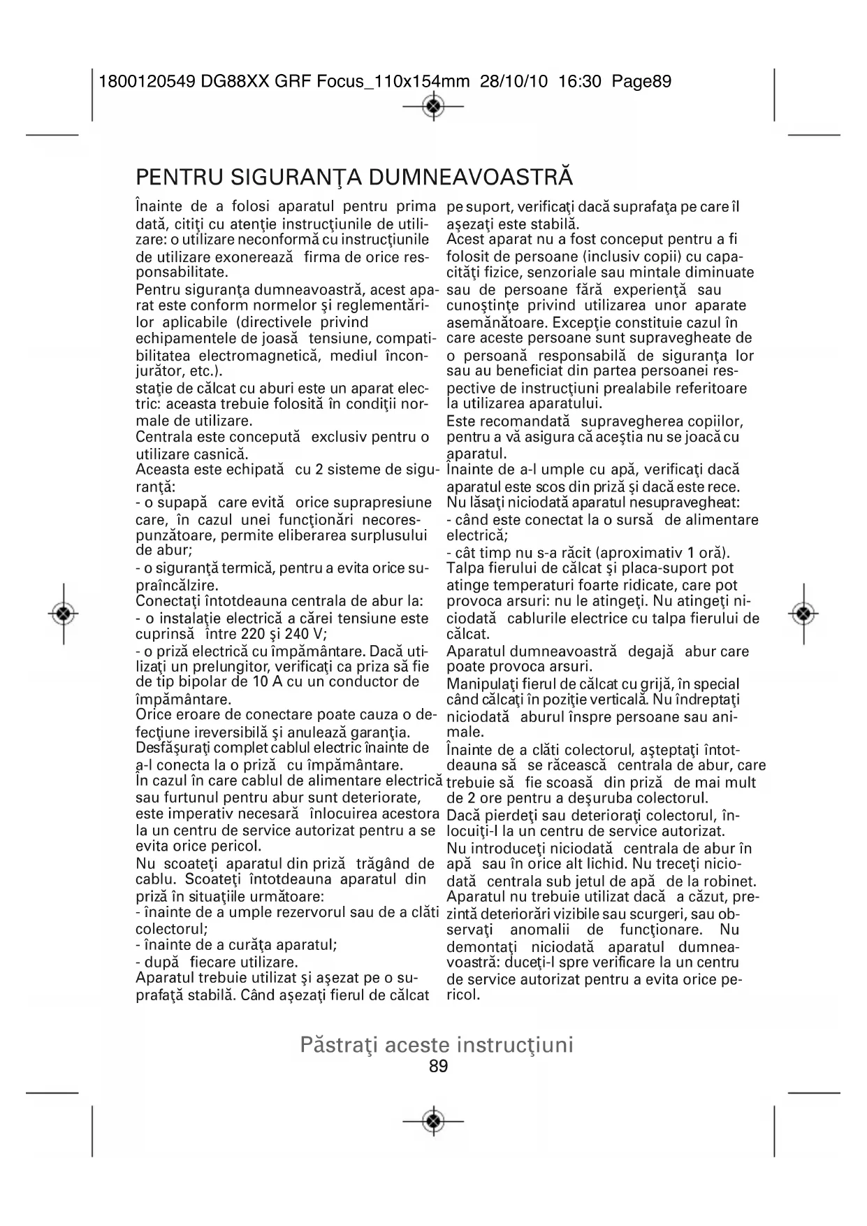 MANUAL DE UTILIZARE Pro Perfect DG8880 ROWENTA