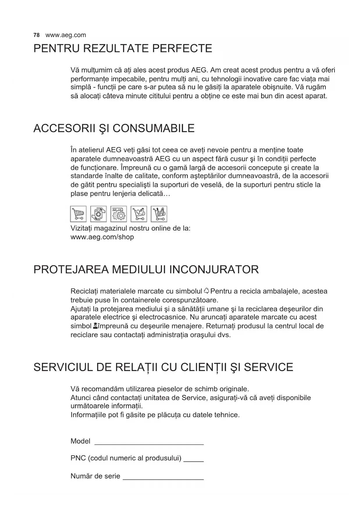 SERVICIUL DE RELAŢII CU CLIENŢII ŞI SERVICE Vă recomandăm utilizarea pieselor de schimb originale.