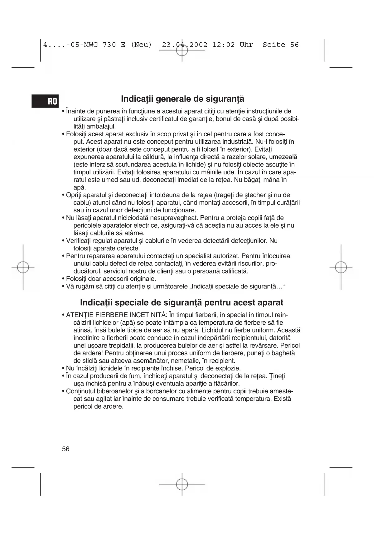 4....-05-MWG 730 E (Neu) 23.04.2002 12:02 Uhr Seite 57• Nu încælzifli deodatæ cantitæfli prea mari. Aparatul pierde în acest caz din efici- enflæ.