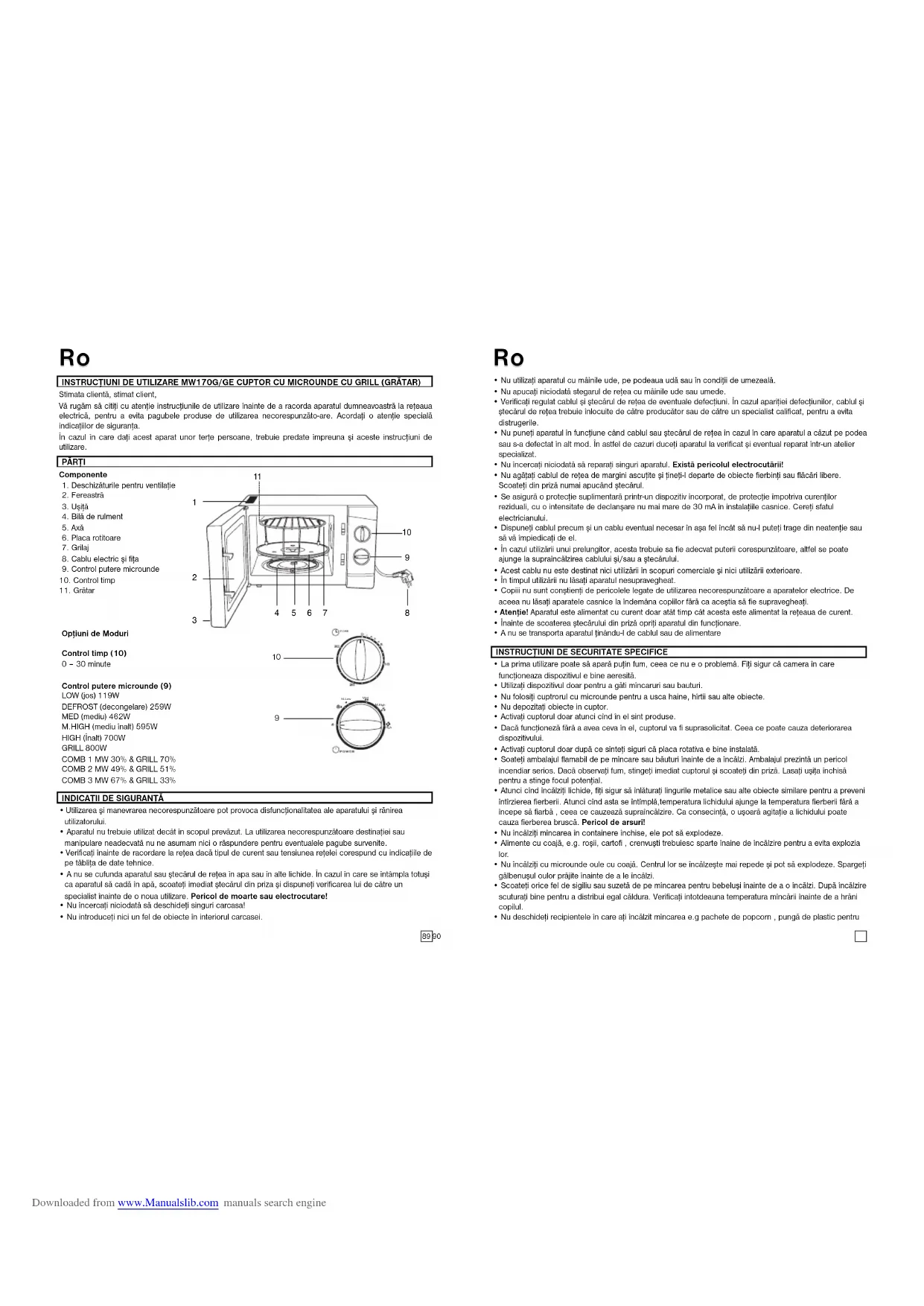 MANUAL DE UTILIZARE MW 170 G ELTA