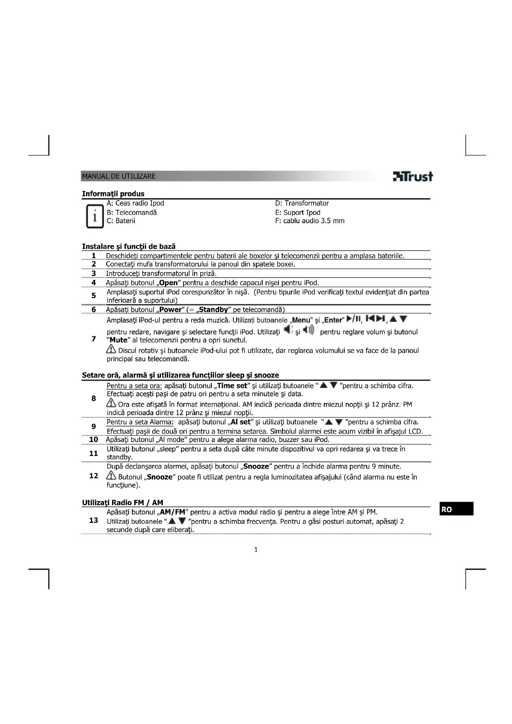SP2993 - Radio ceas TRUST - Manual de utilizare gratuit