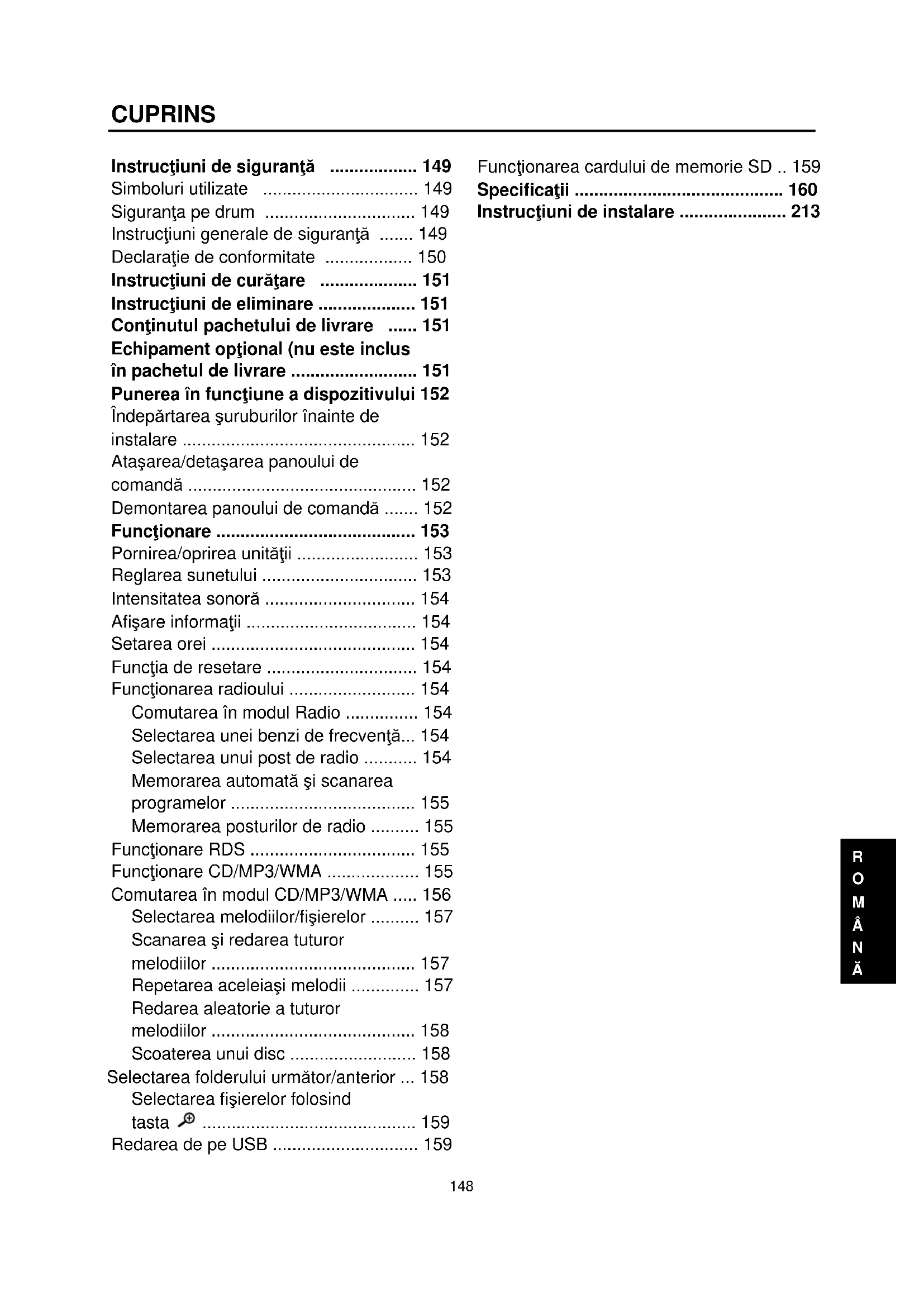 Este permis să montaţi Dvs. înşivă radioul pentru maşină numai dacă aveţi experienţă în montarea radiourilor de maşină şi sunteţi familiarizaţi cu sistemul electric al vehiculului. În acest sens, respectaţi indicaţiile de montaj de la sfârşitul acestor instrucţiuni.