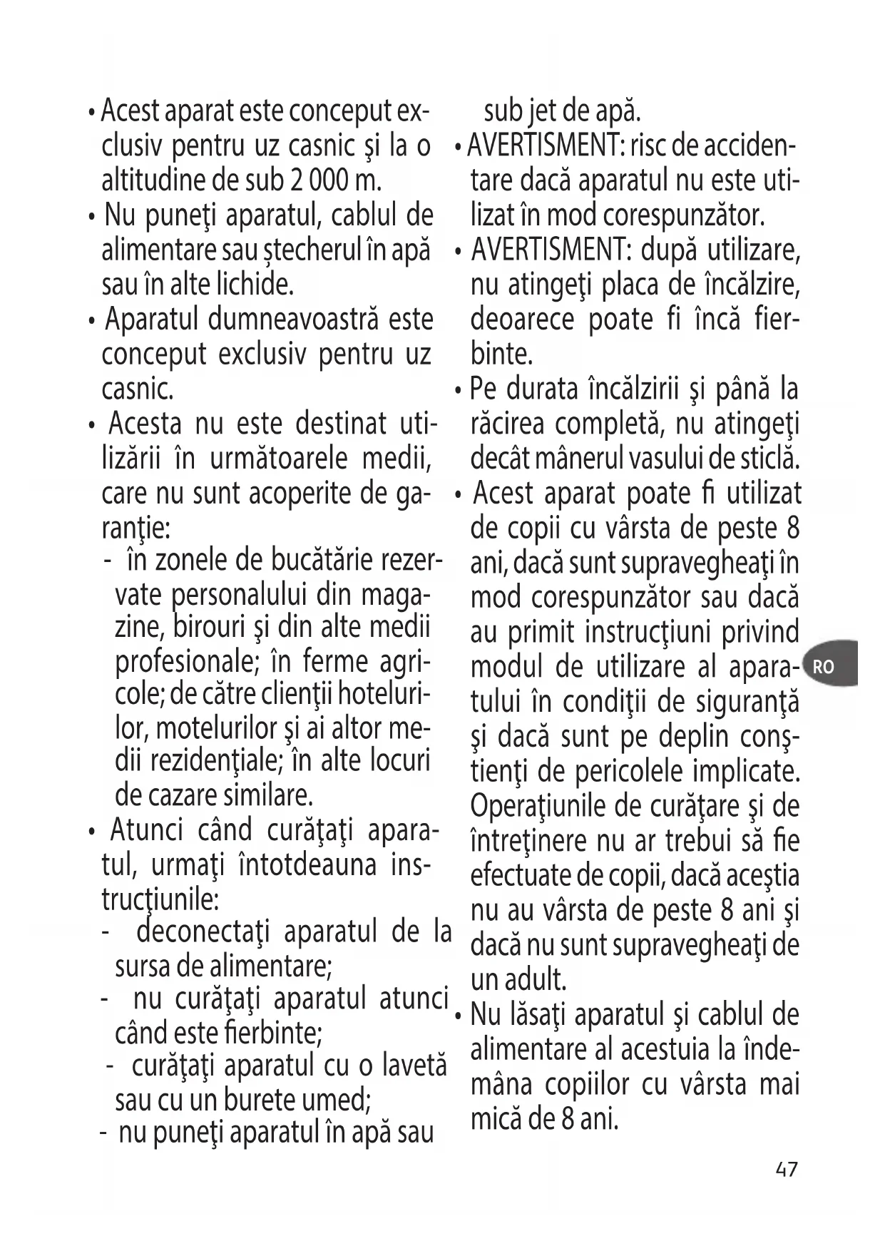- AVERTISMENT: după utilizare, nu atingeţi placa de încălzire, deoarece poate fi încă fier- binte.