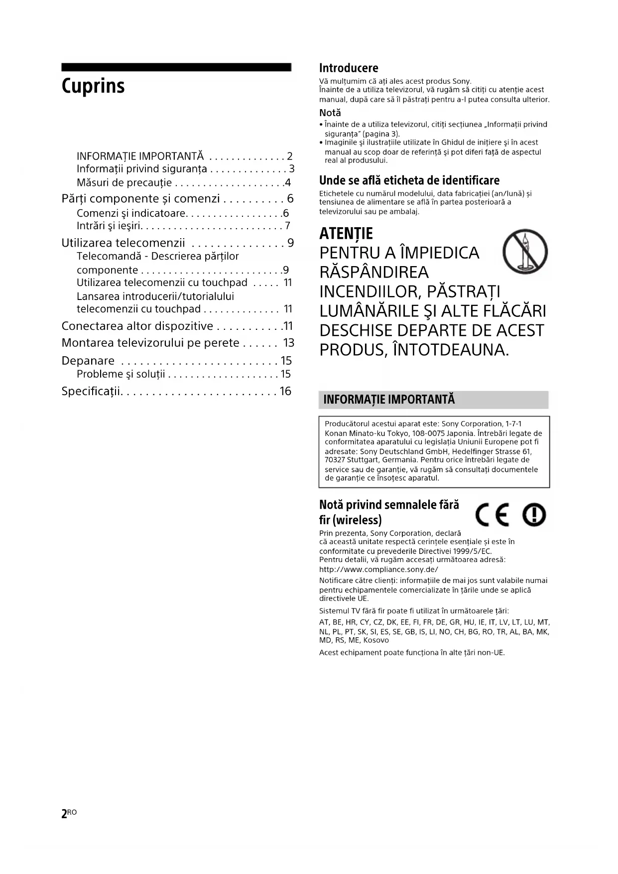 INFORMAŢIE IMPORTANTĂ . . . . . . . . . . . . . . 2