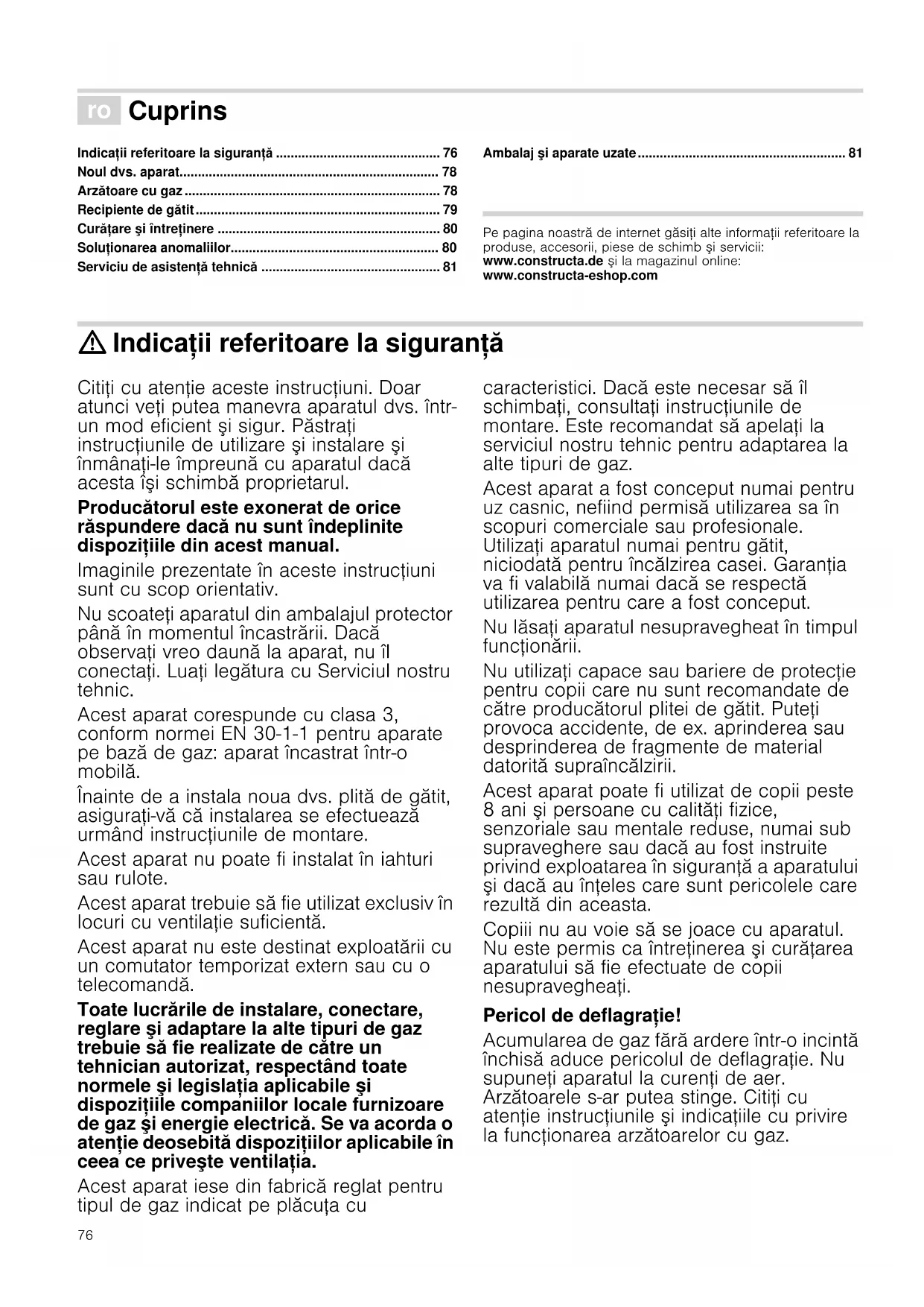 CA174251 - Aragaz CONSTRUCTA - Manual de utilizare gratuit