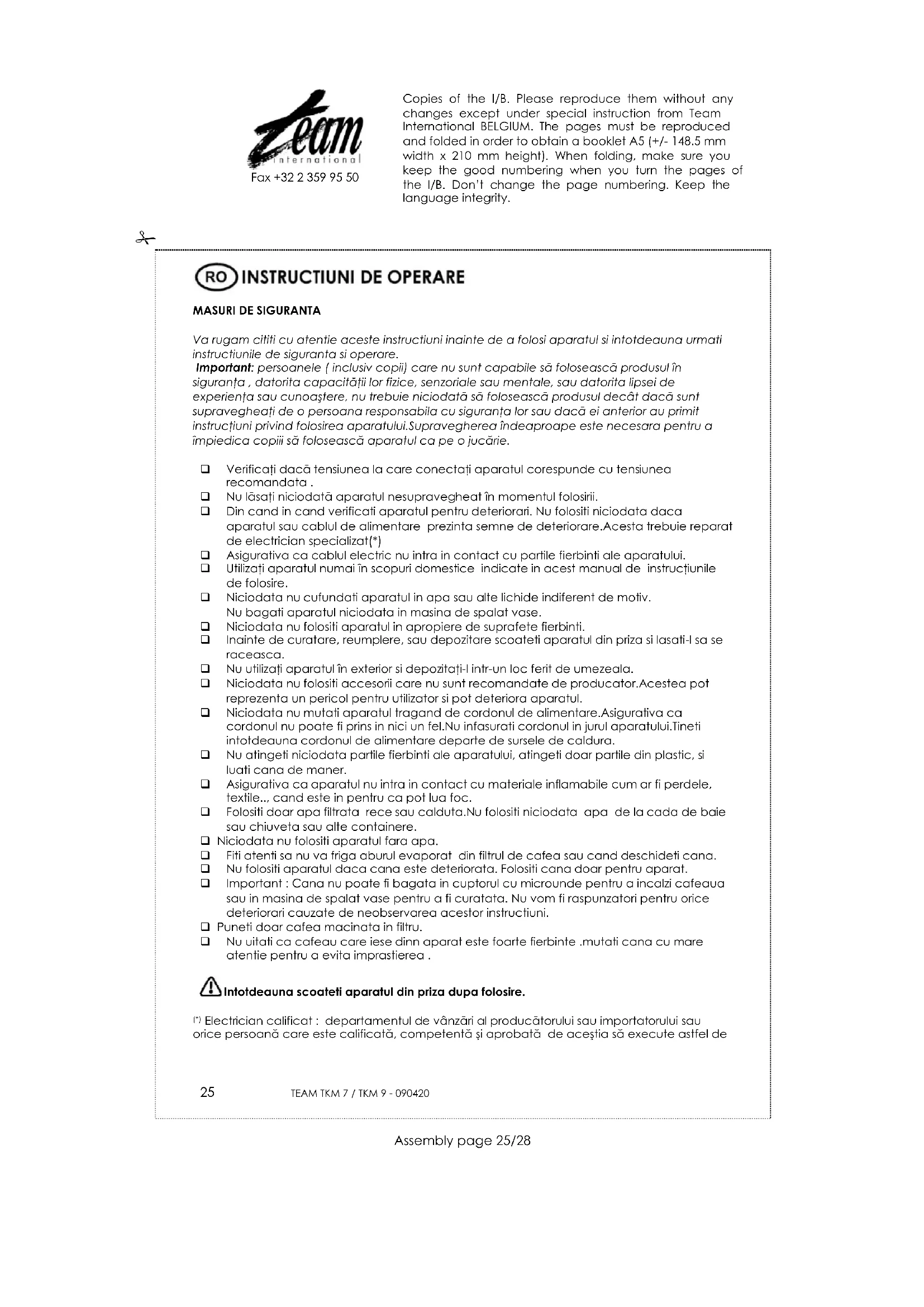 MANUAL DE UTILIZARE TKM 9 TEAM