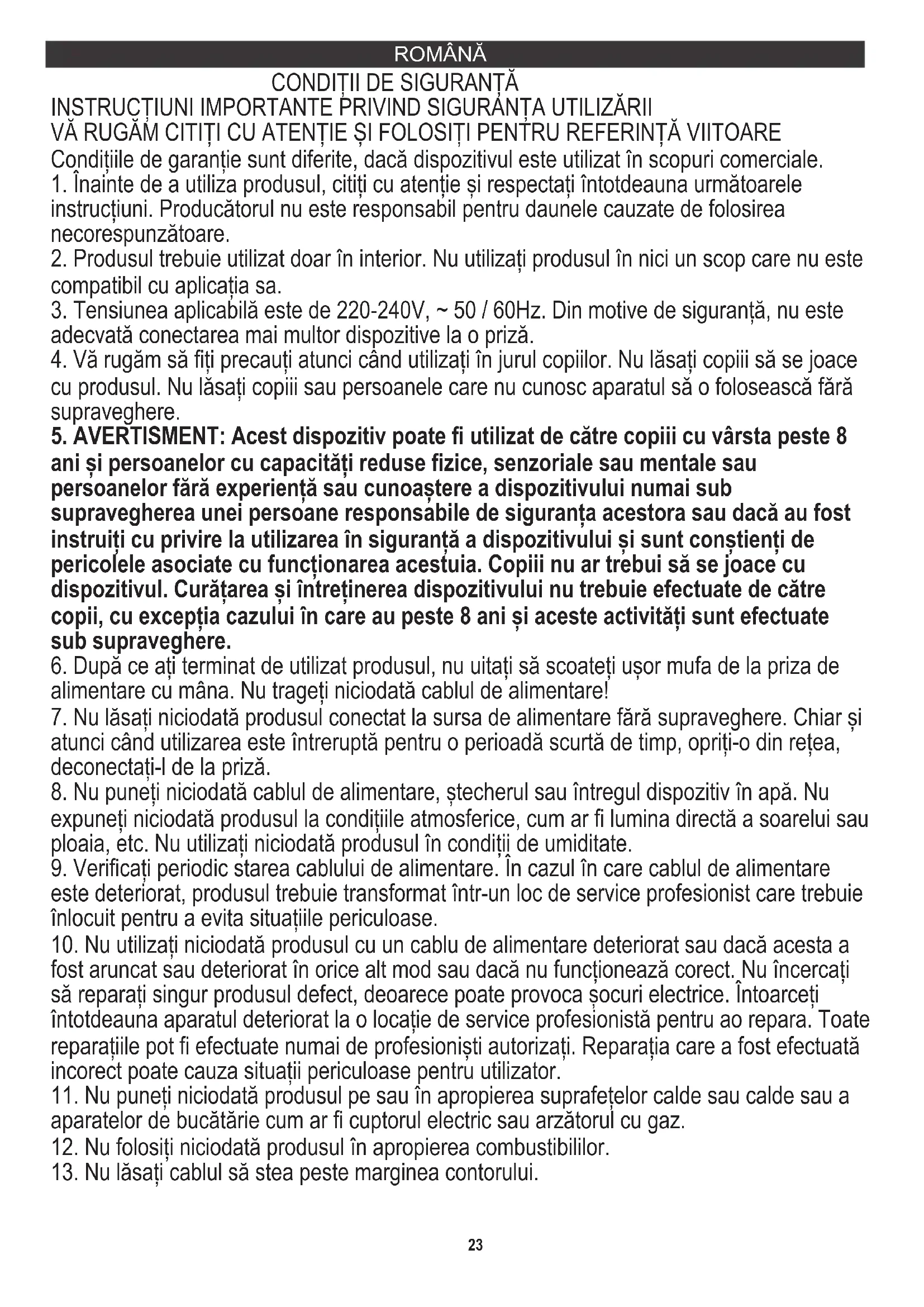 5. AVERTISMENT: Acest dispozitiv poate fi utilizat de către copiii cu vârsta peste 8