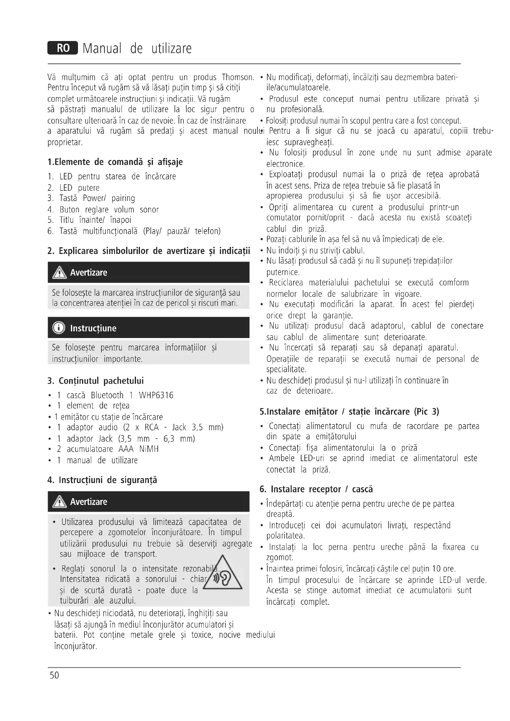 4. Instrucțiuni de siguranță
