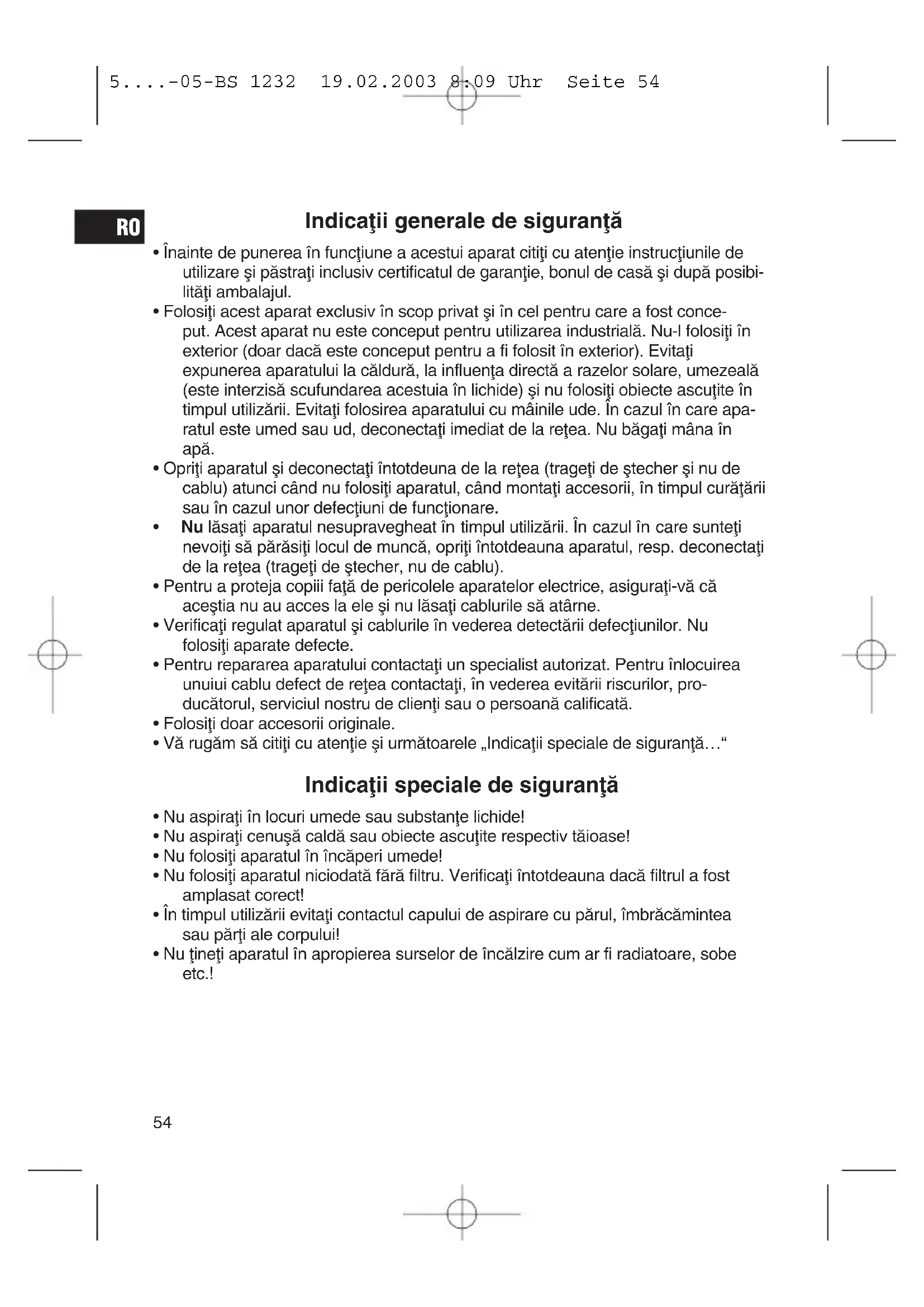 - Læsafli aparatul sæ se ræceascæ complet.