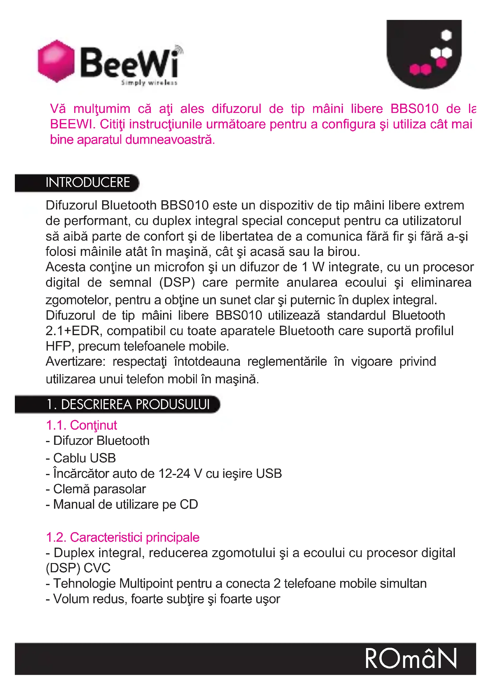 MANUAL DE UTILIZARE BBS010A0 BEEWI