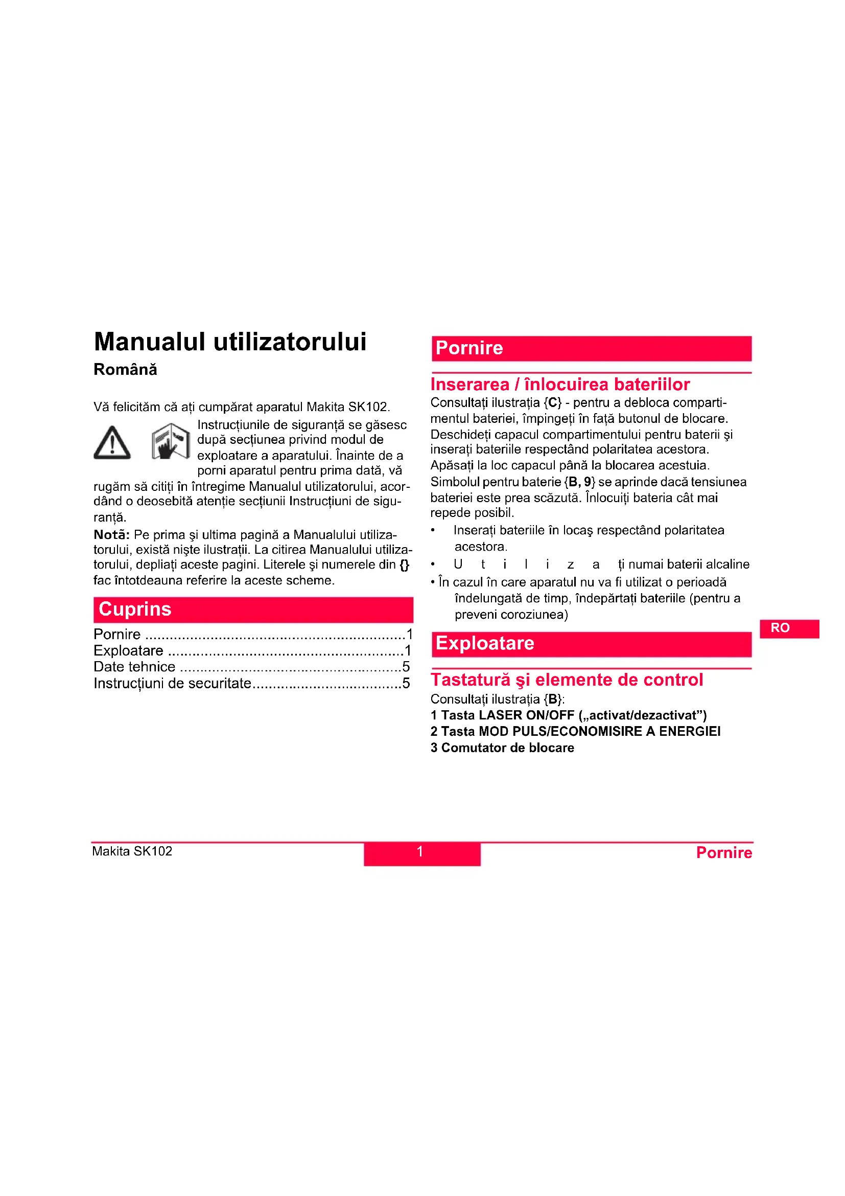 MANUAL DE UTILIZARE SK102Z MAKITA