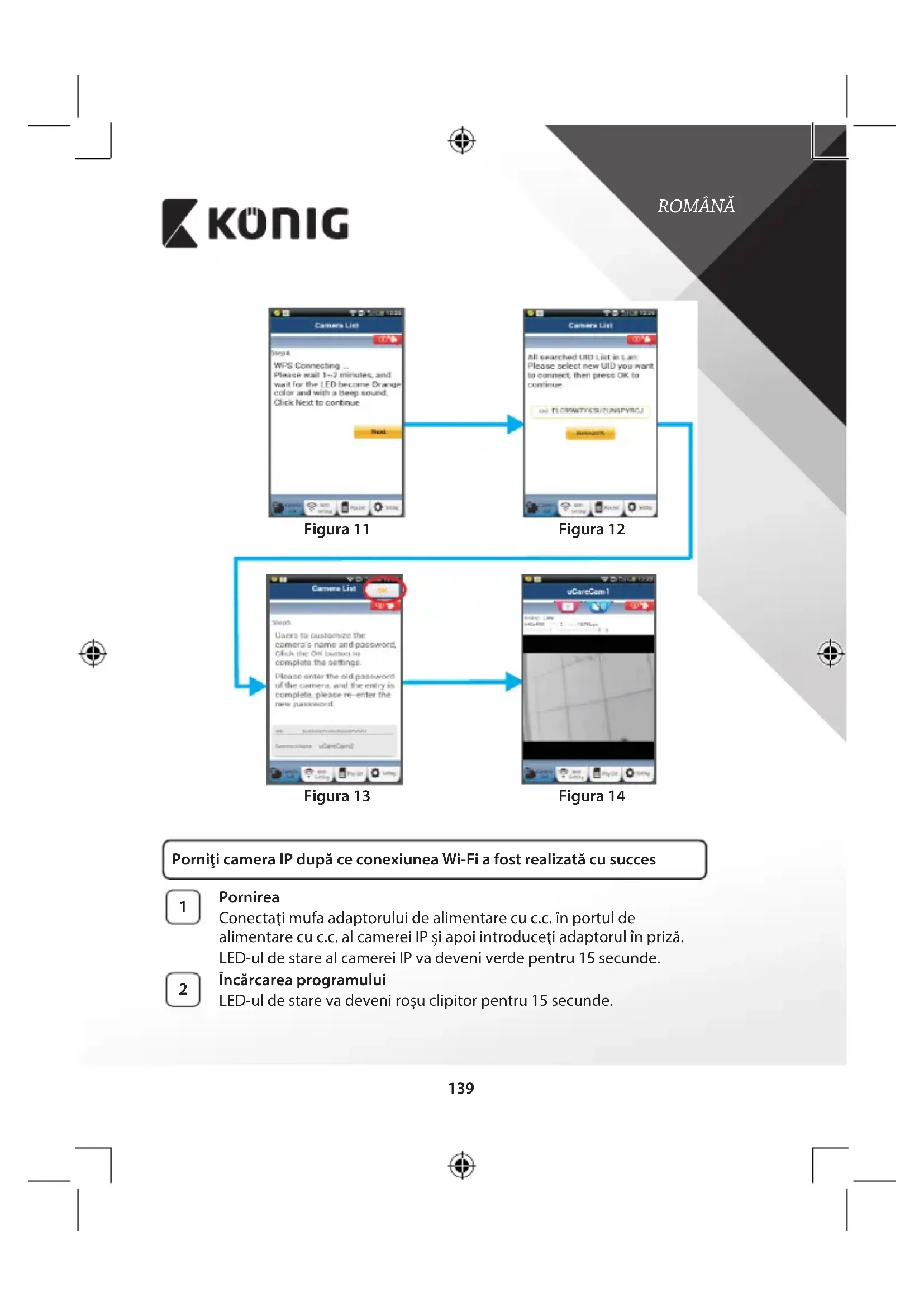 Figura11 Figura13 Figura12 Figura14 Porniţi camera IP după ce conexiunea Wi‑Fi a fost realizată cu succes
