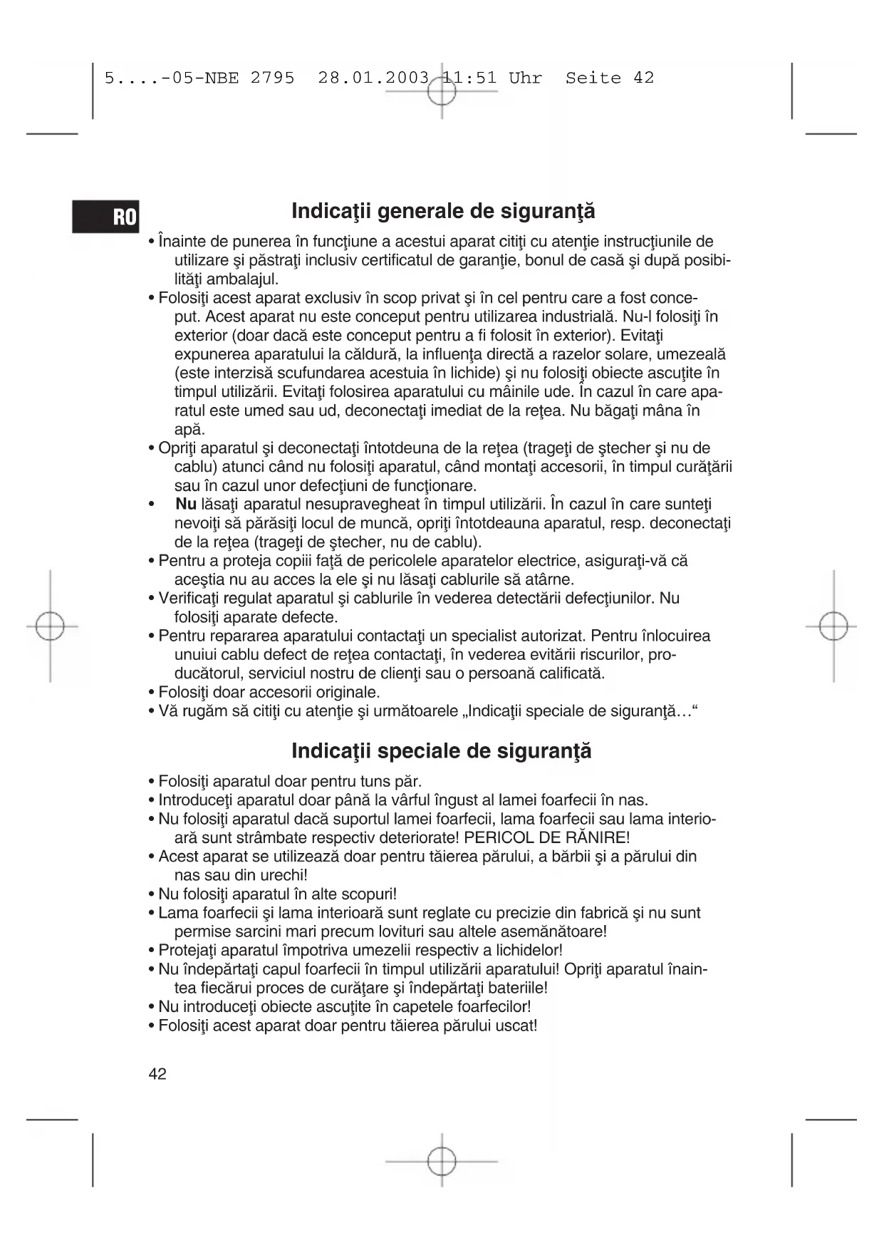 - Acest aparat se utilizeazæ doar pentru tæierea pærului, a bærbii øi a pærului din nas sau din urechi!