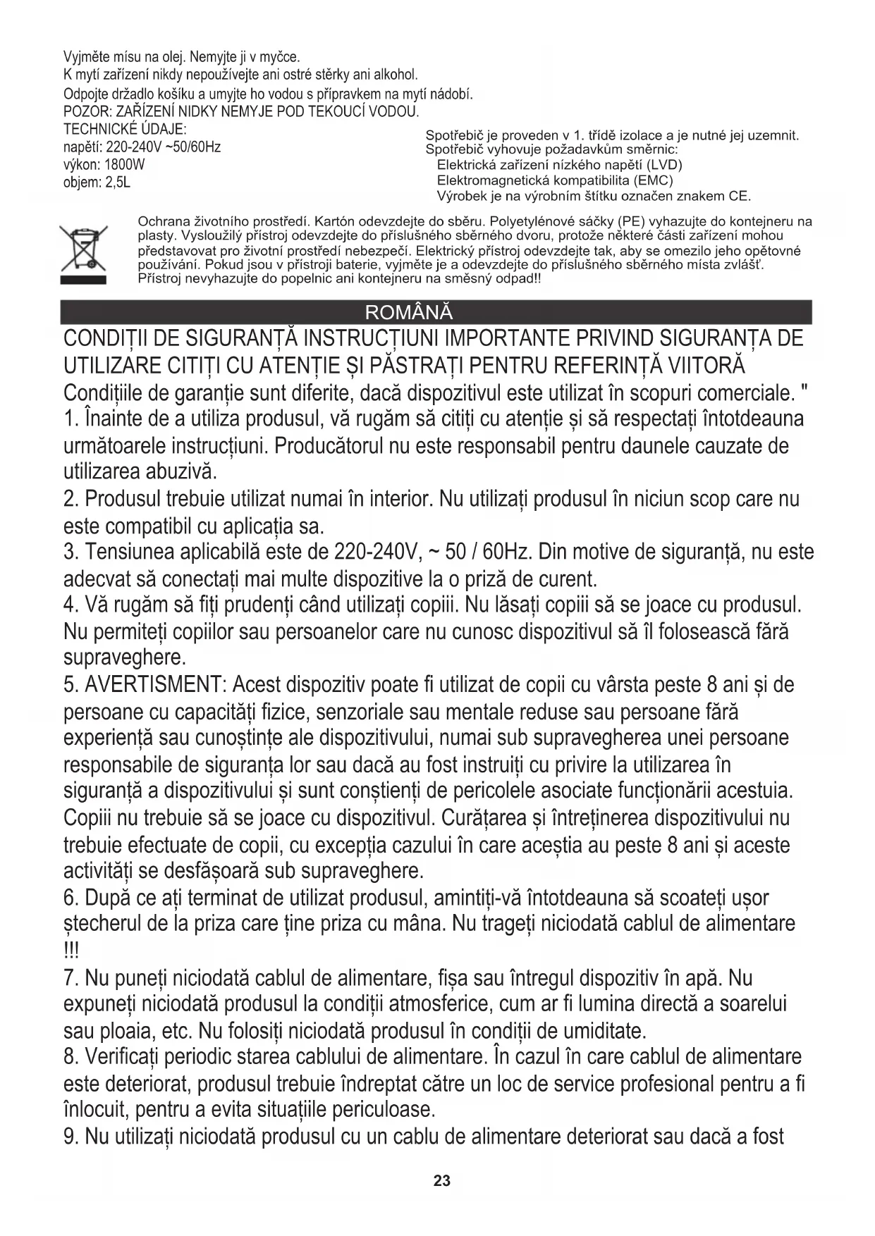 următoarele instrucțiuni. Producătorul nu este responsabil pentru daunele cauzate de utilizarea abuzivă. Condițiile de garanție sunt diferite, dacă dispozitivul este utilizat în scopuri comerciale. " CONDIȚII DE SIGURANȚĂ INSTRUCȚIUNI IMPORTANTE PRIVIND SIGURANȚA DE UTILIZARE CITIȚI CU ATENȚIE ȘI PĂSTRAȚI PENTRU REFERINȚĂ VIITORĂ24