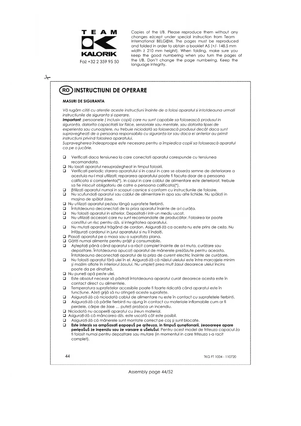TKG FT 1004 - Friteuză TEAM - Manual de utilizare gratuit