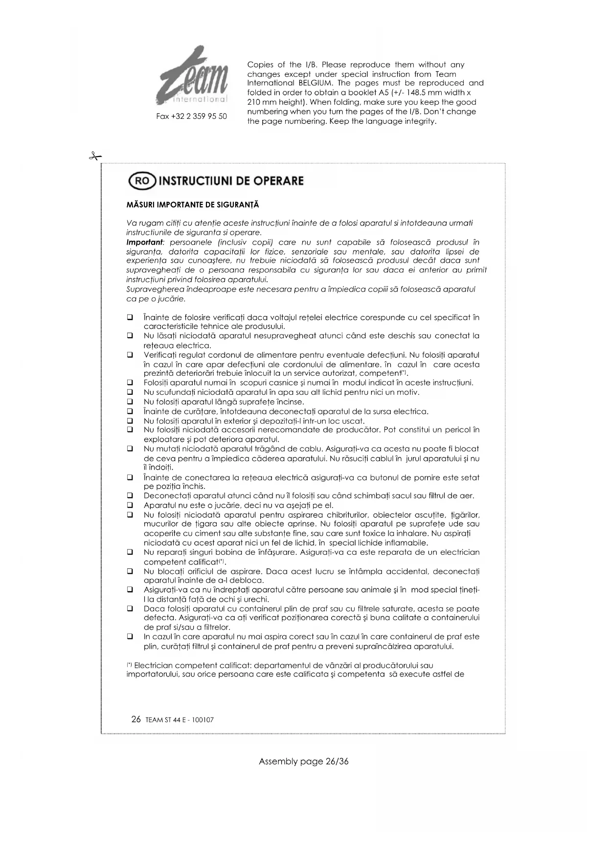 ST 44 - Aspirator TEAM - Manual de utilizare gratuit